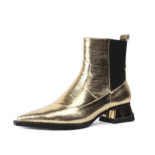 TinaCus Women's Genuine Leather Handmade Block Heel Pointed Toe Modern Ankle Boots