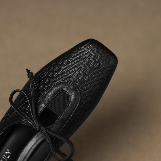 TinaCus Handmade Women's Genuine Leather Closed Toe Woven Chunky Heel Slingback Shoes with Bow