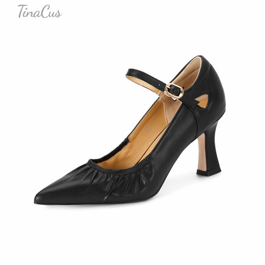 TinaCus Women's Pointed Toe Genuine Leather Handmade Strap Buckle High Heels Pumps Shoes