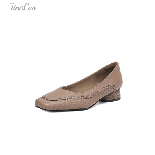 TinaCus Handmade Women's Genuine Leather Square Toe Braided Chunky Heel Slip On Pump Shoes