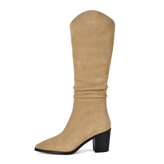 TinaCus Handmade Women's Pointed Toe Suede Leather Block Heel Side Zip Up Mid-Calf Boots