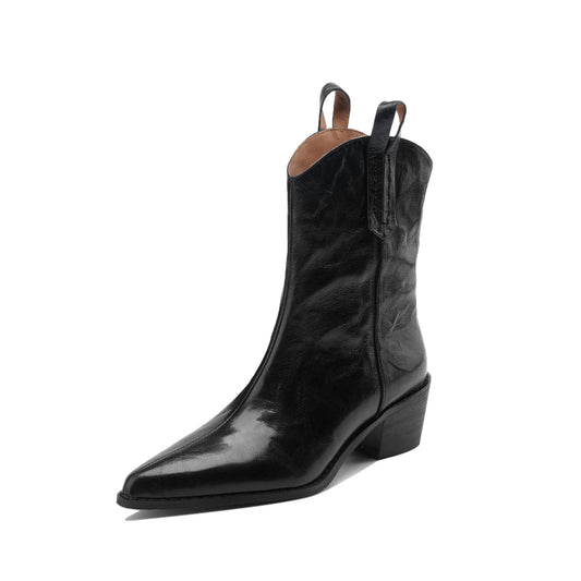 TinaCus Women's Pointed Toe Genuine Leather Handmade Chunky Heel Zip Up Western Boots