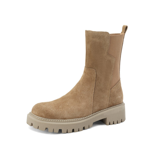 TinaCus Handmade Women's Leather Patchwork Side Zip Round Toe Low Block Heel Platform Boots