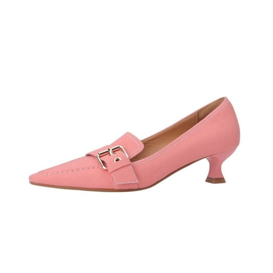 TinaCus Women's Genuine Leather Handmade Litchi Rind Slip On Buckle Pointed Toe Kitten Heel Pumps Shoes