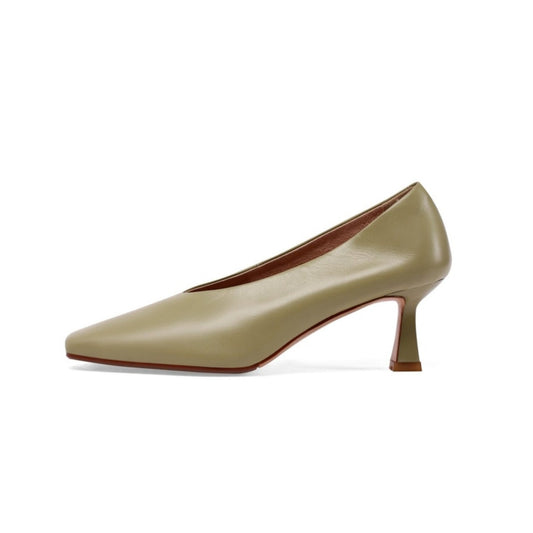 TinaCus Women's Handmade Genuine Leather Pointed Toe Low Kitten Heel Slip On V-Shaped Retro Pump Shoes