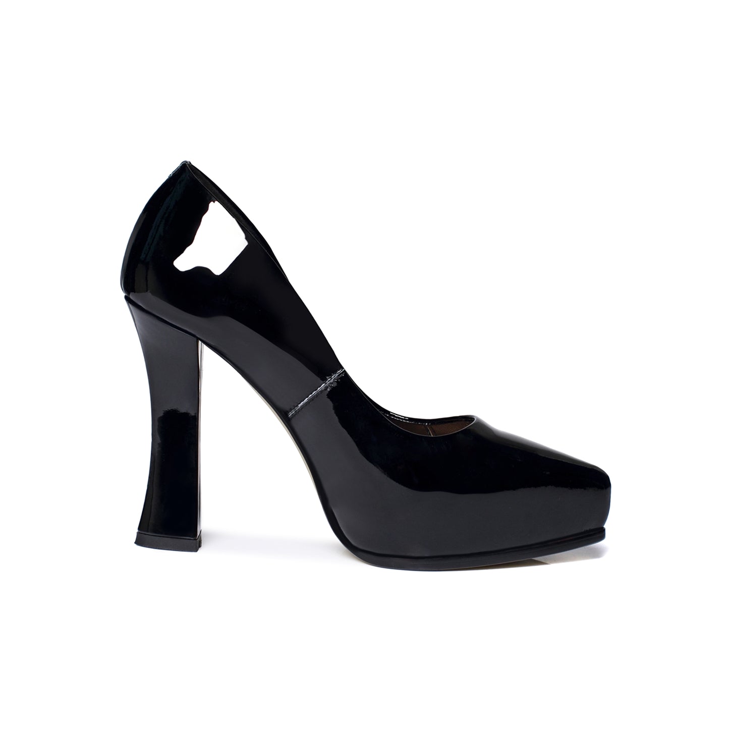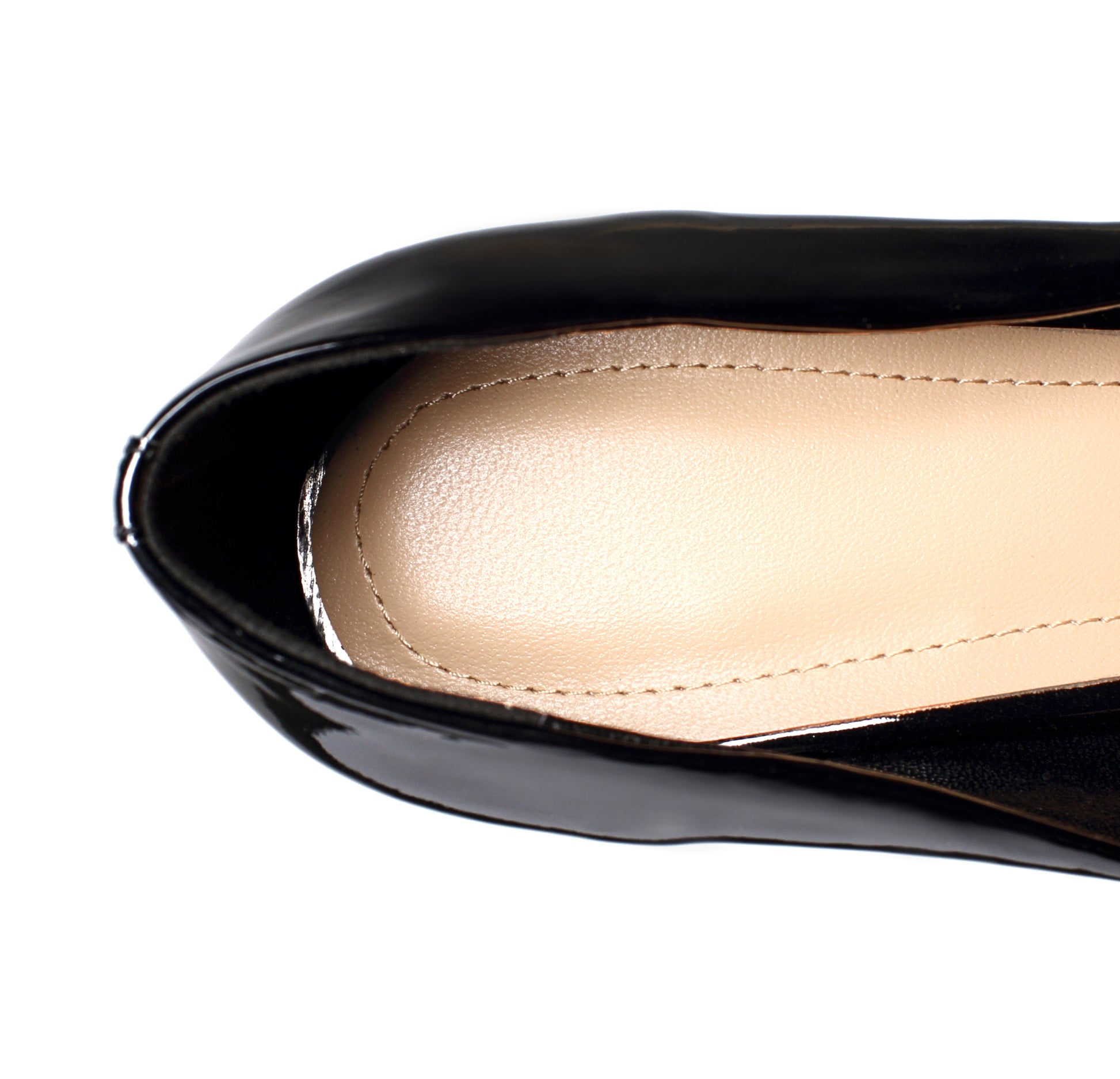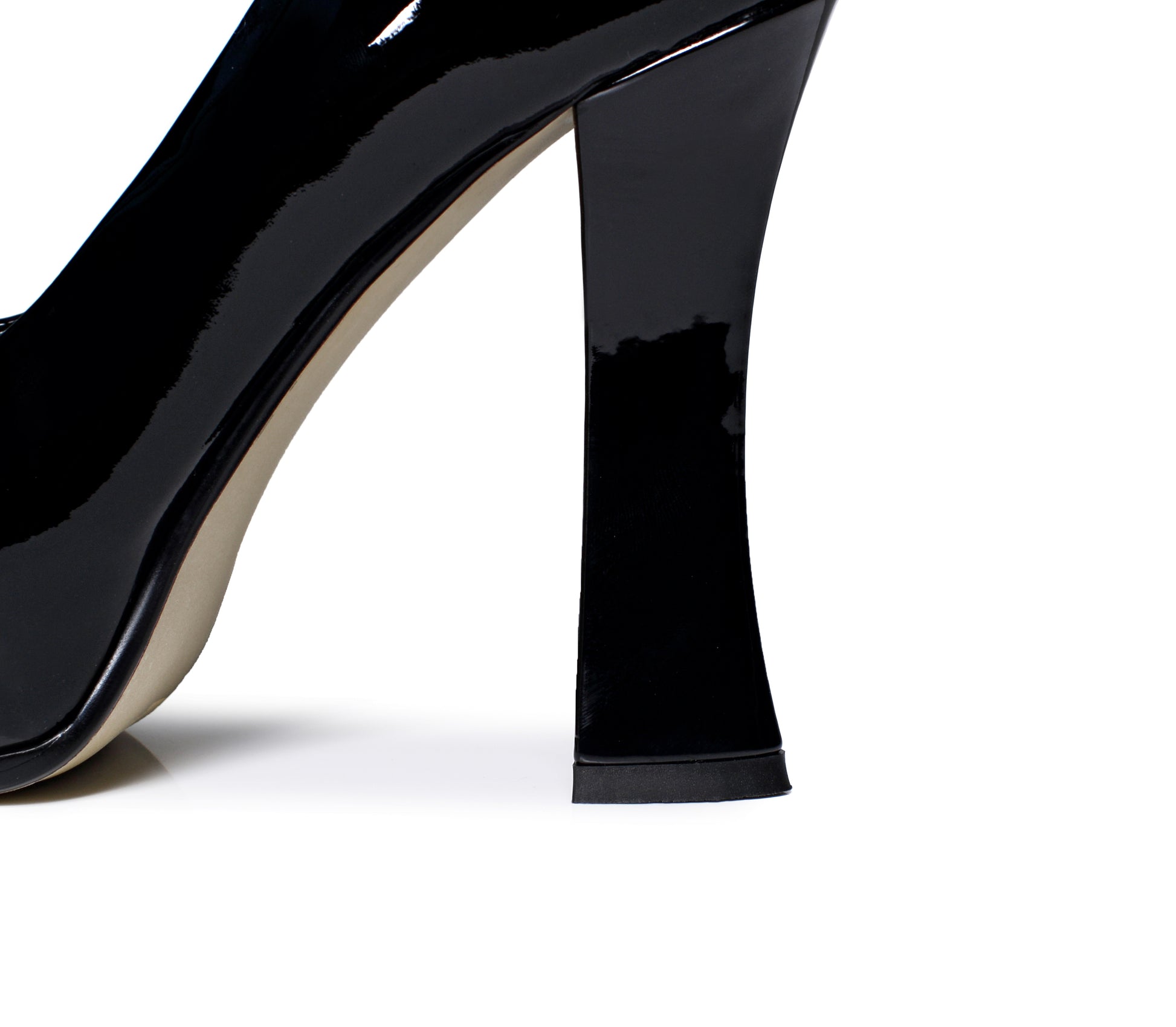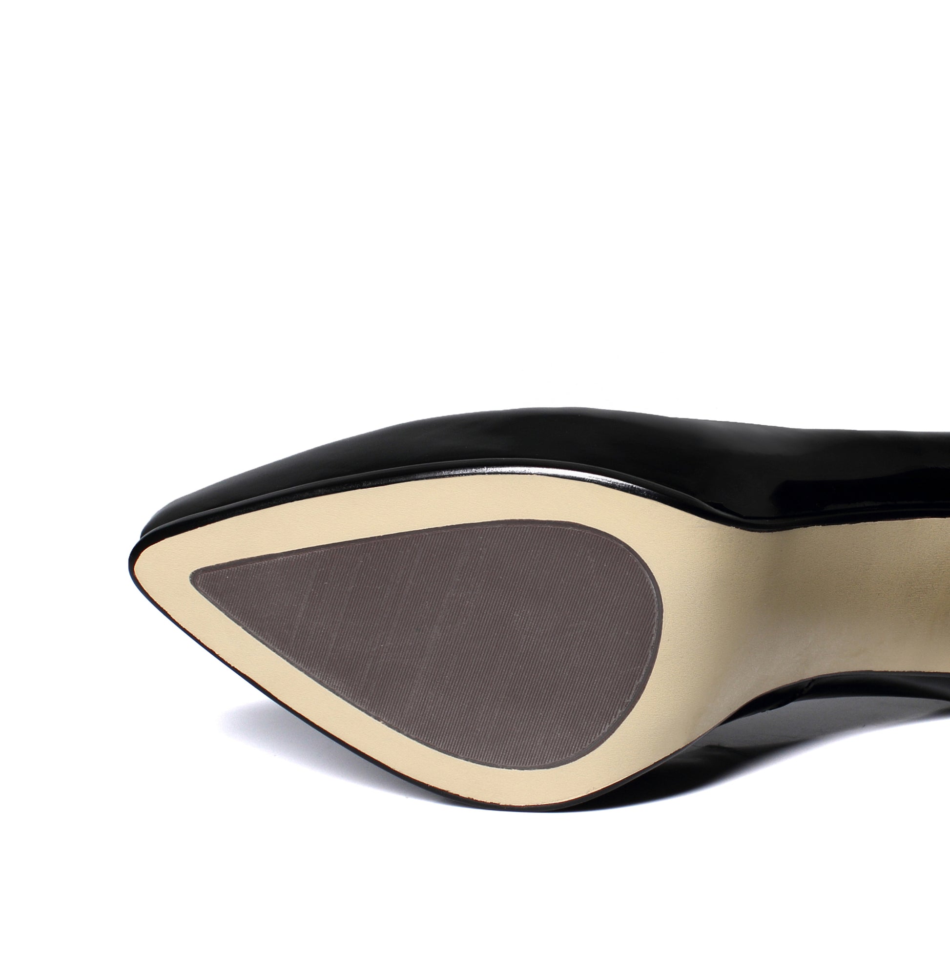 This pumps are designed with glossy patent leather, pointed toe and supper high spool heels.Slip-resistant sole could show your confidence in every step.