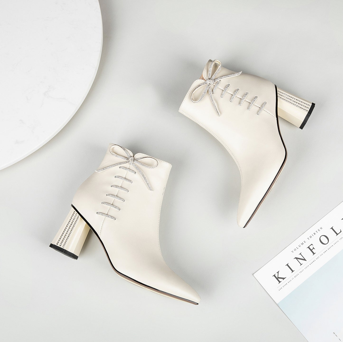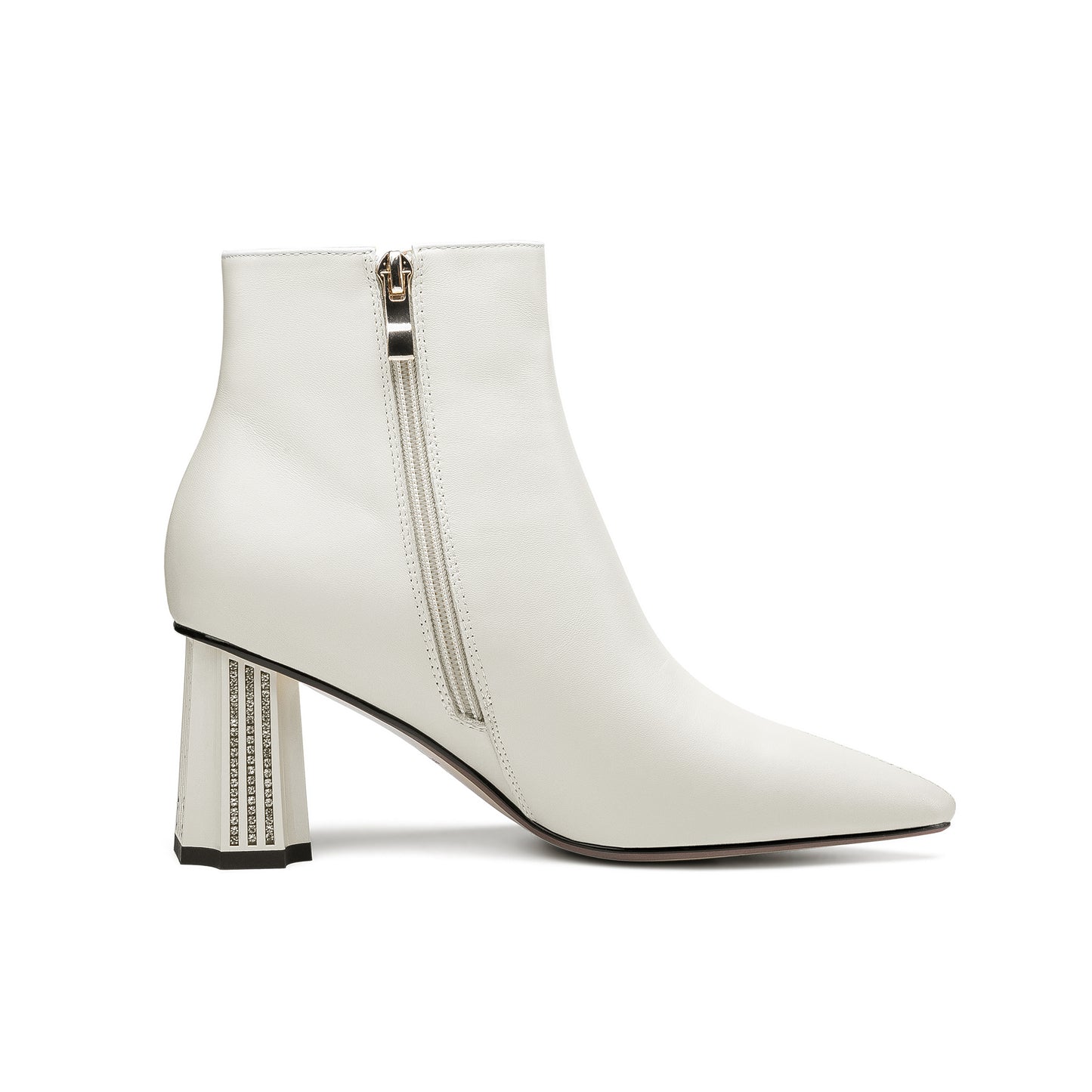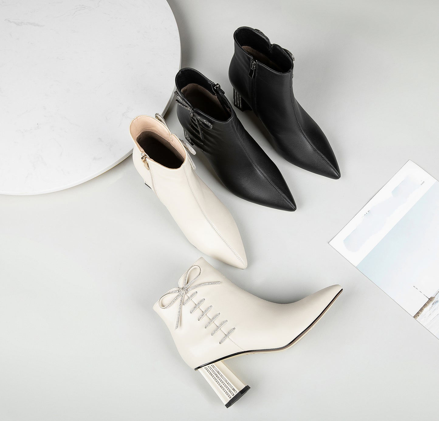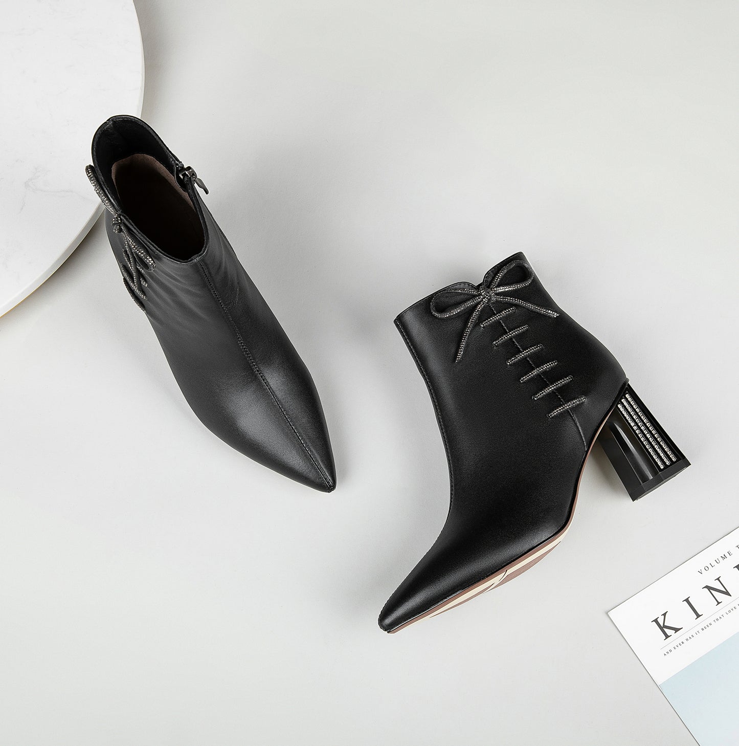 This ankle boots are designed with genuine leather, pointed toe and mid chunky heels.Slip-resistant sole could show your confidence in every step.