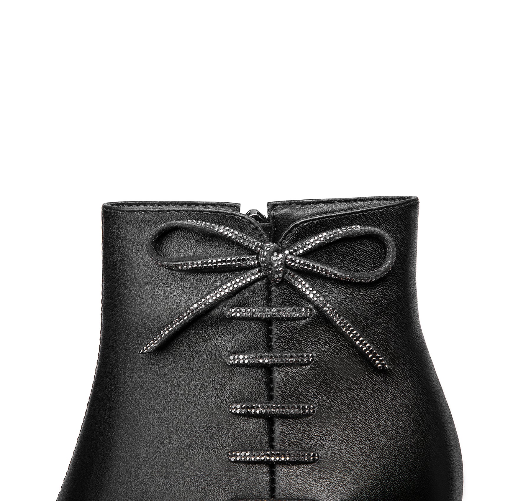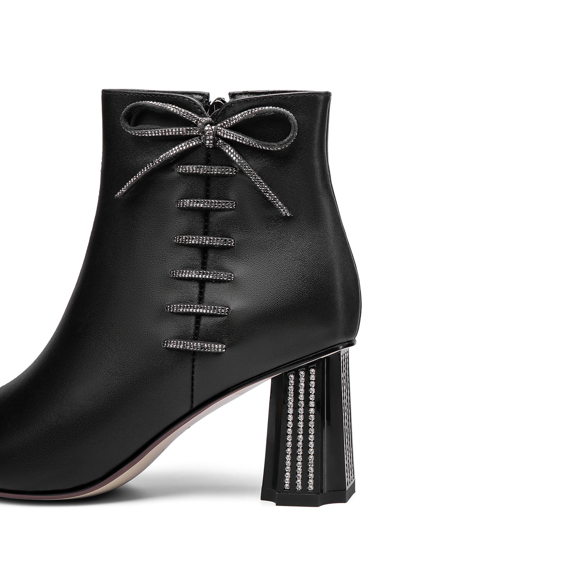 TinaCus Women's Genuine Leather Handmade Comfortable Mid Block Heel Pointed Toe Side Zip Up Dressing Boots with Bowtie Decor