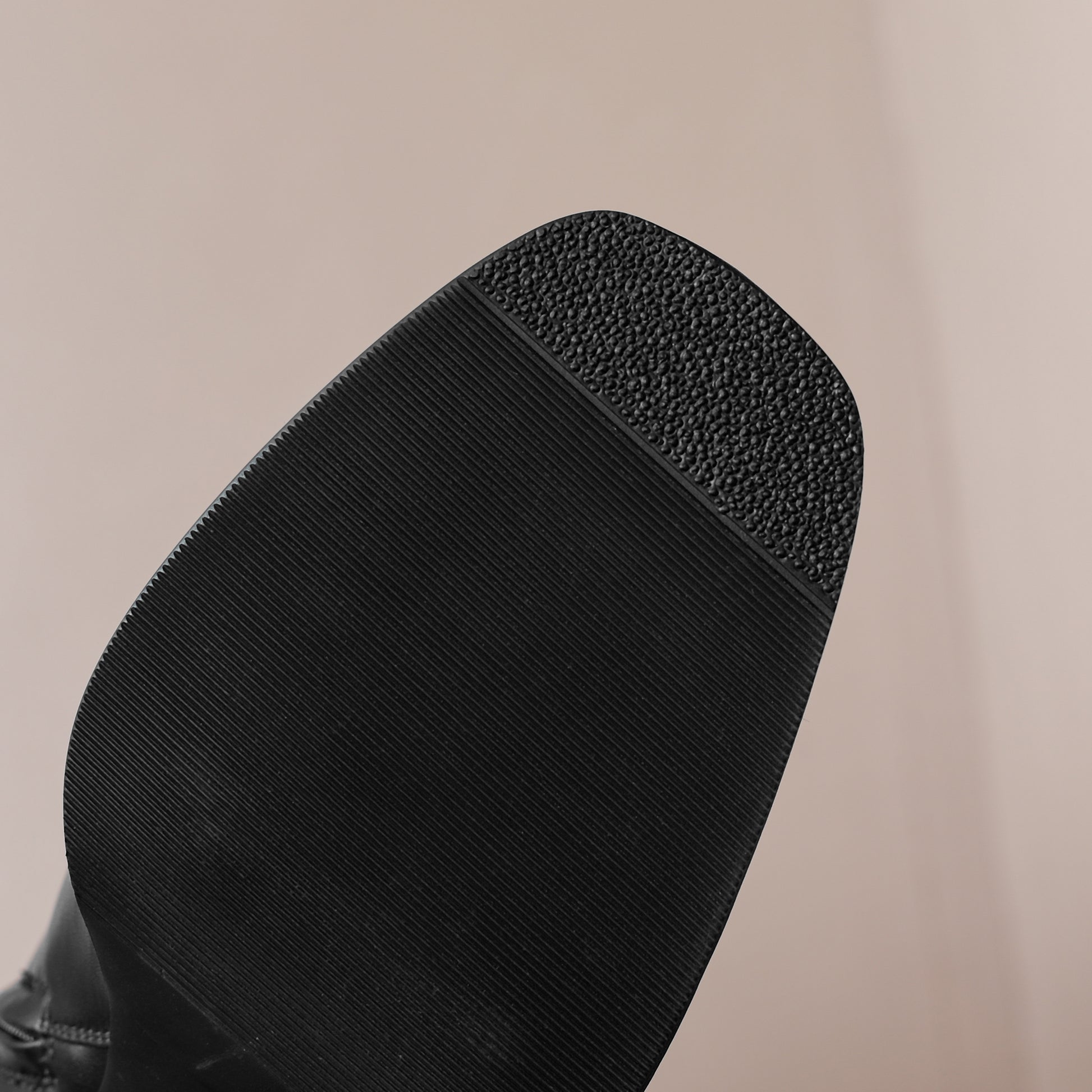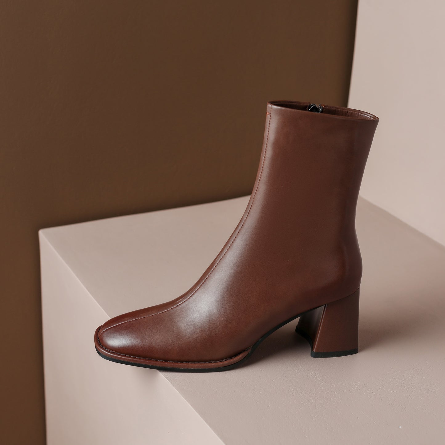 TinaCus Handmade Women's Genuine Leather Sexy Square Toe Mid Block Heel Side Zipper Casual