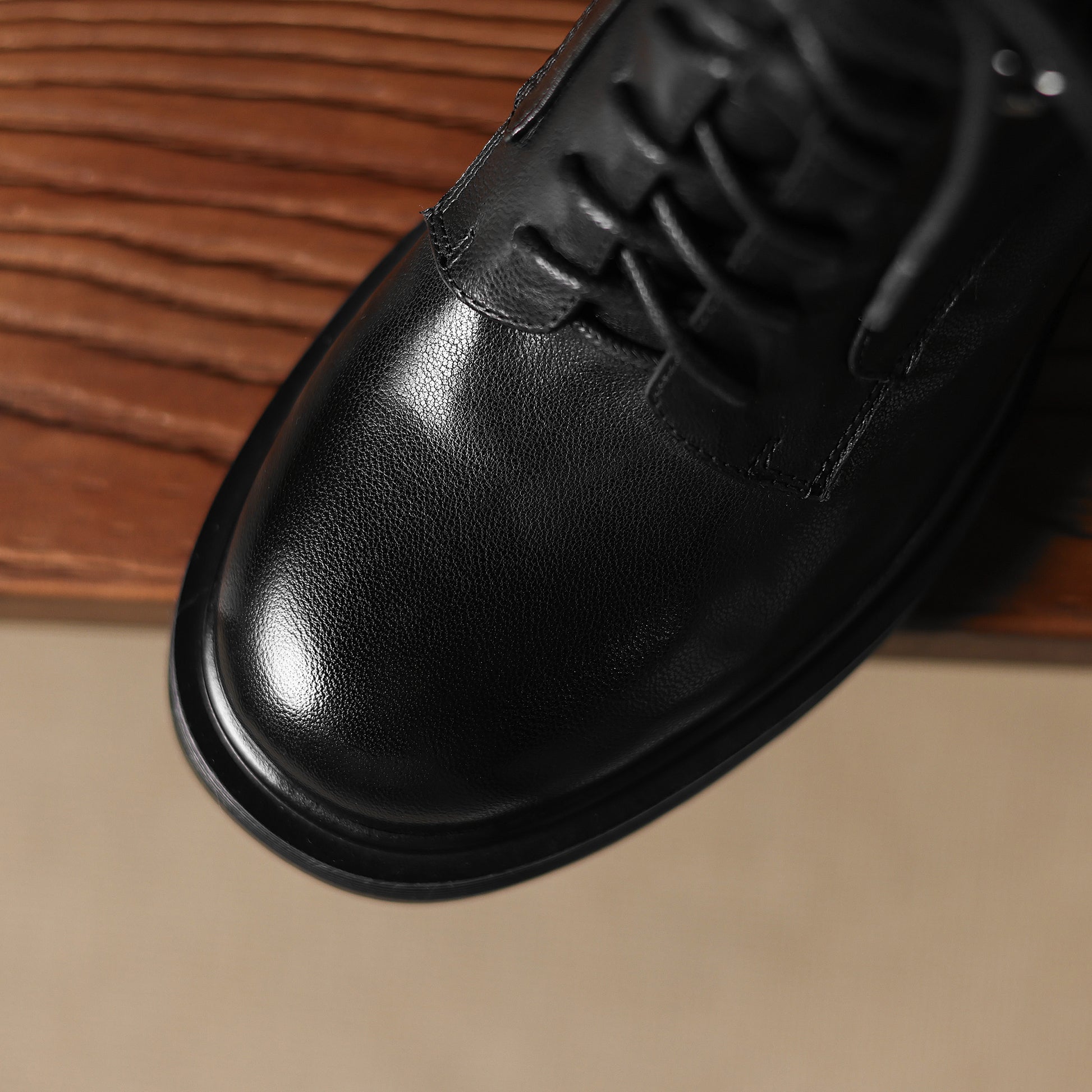 Ankle boots designed with round toe, side zipper, genuine leather, lace up and chunky heels to keep up with fashion trend