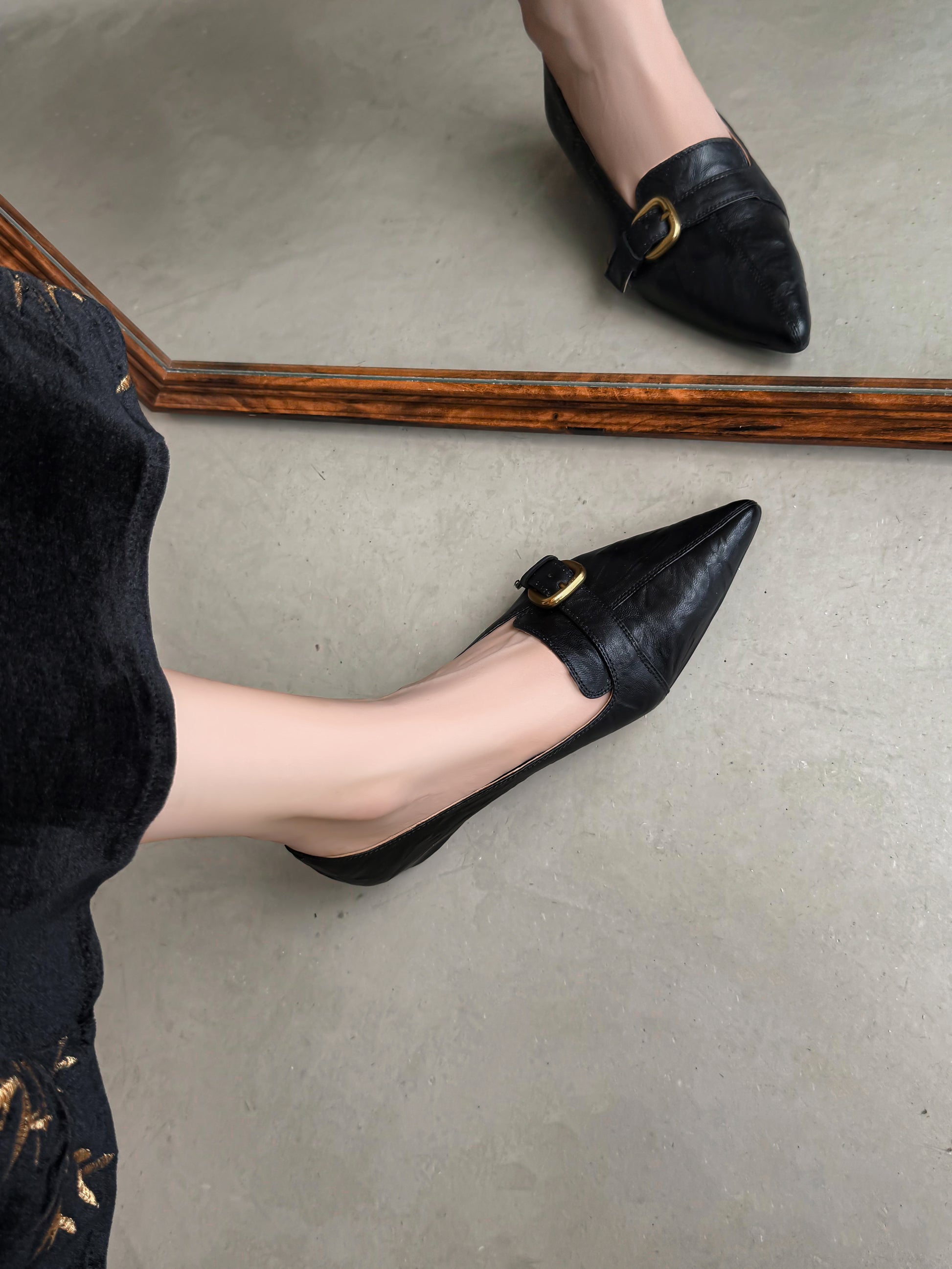 TinaCus Handmade Women's Genuine Leather Pointed Toe Decor Buckle Wedge Heel Office Dress Loafer Shoes