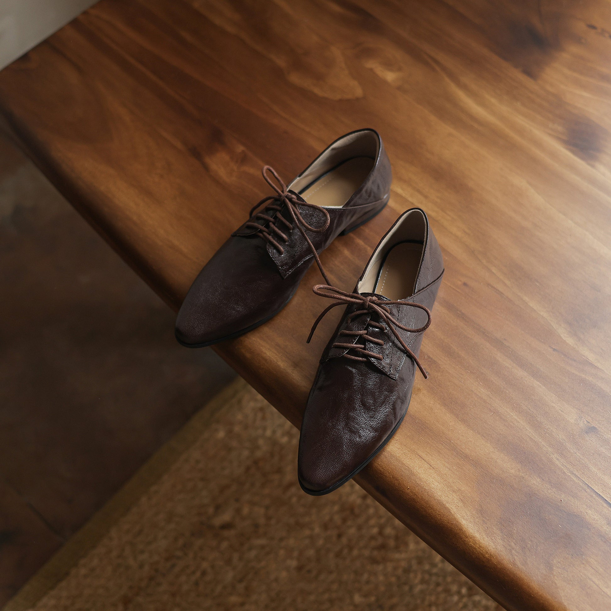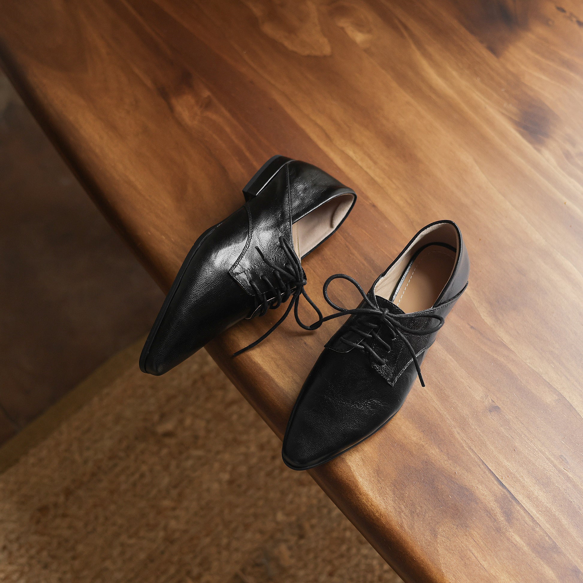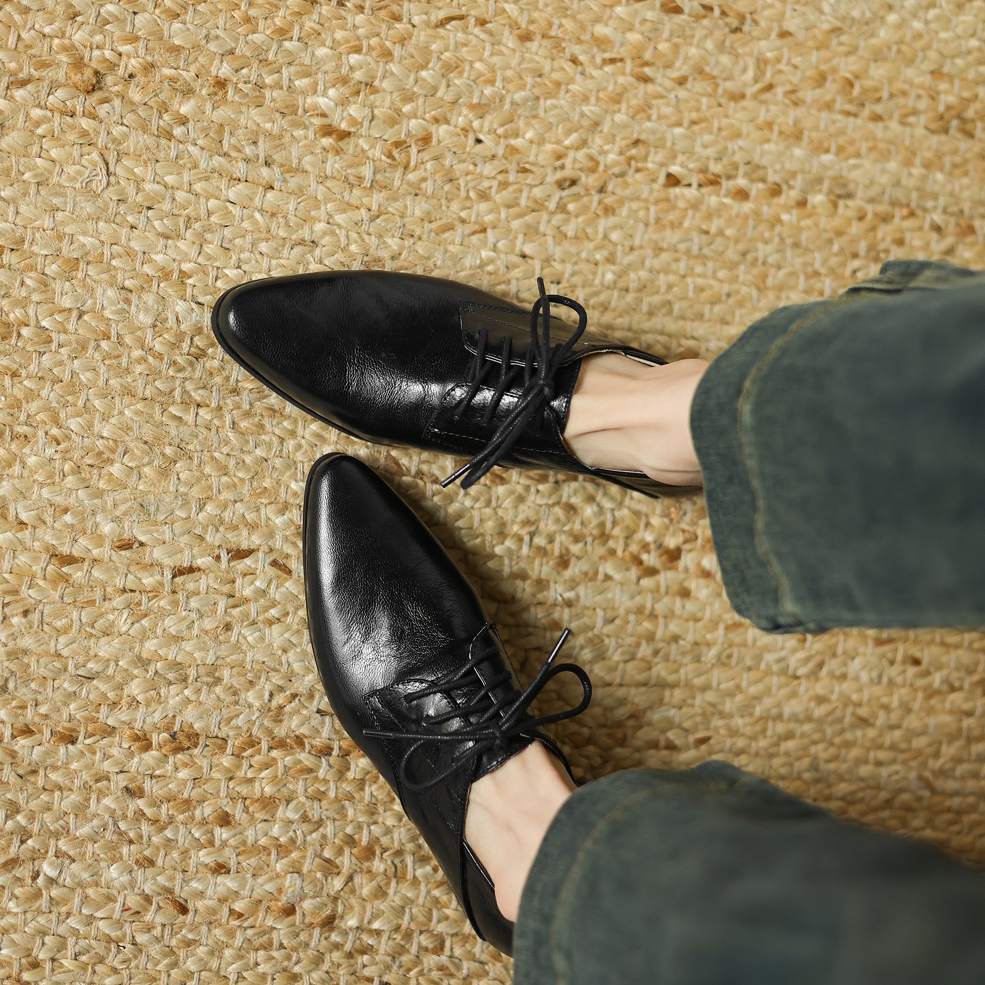 TinaCus Handmade Women's Genuine Leather Pointed Toe Lace-up Classic Oxford Flats
