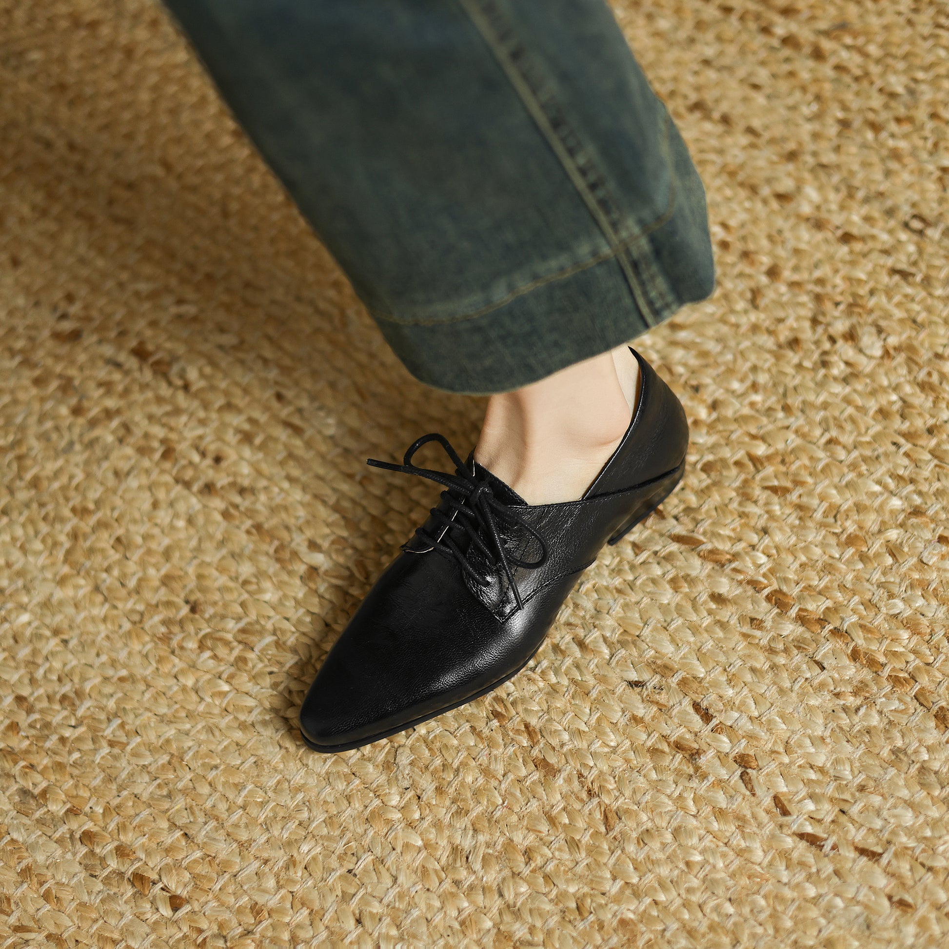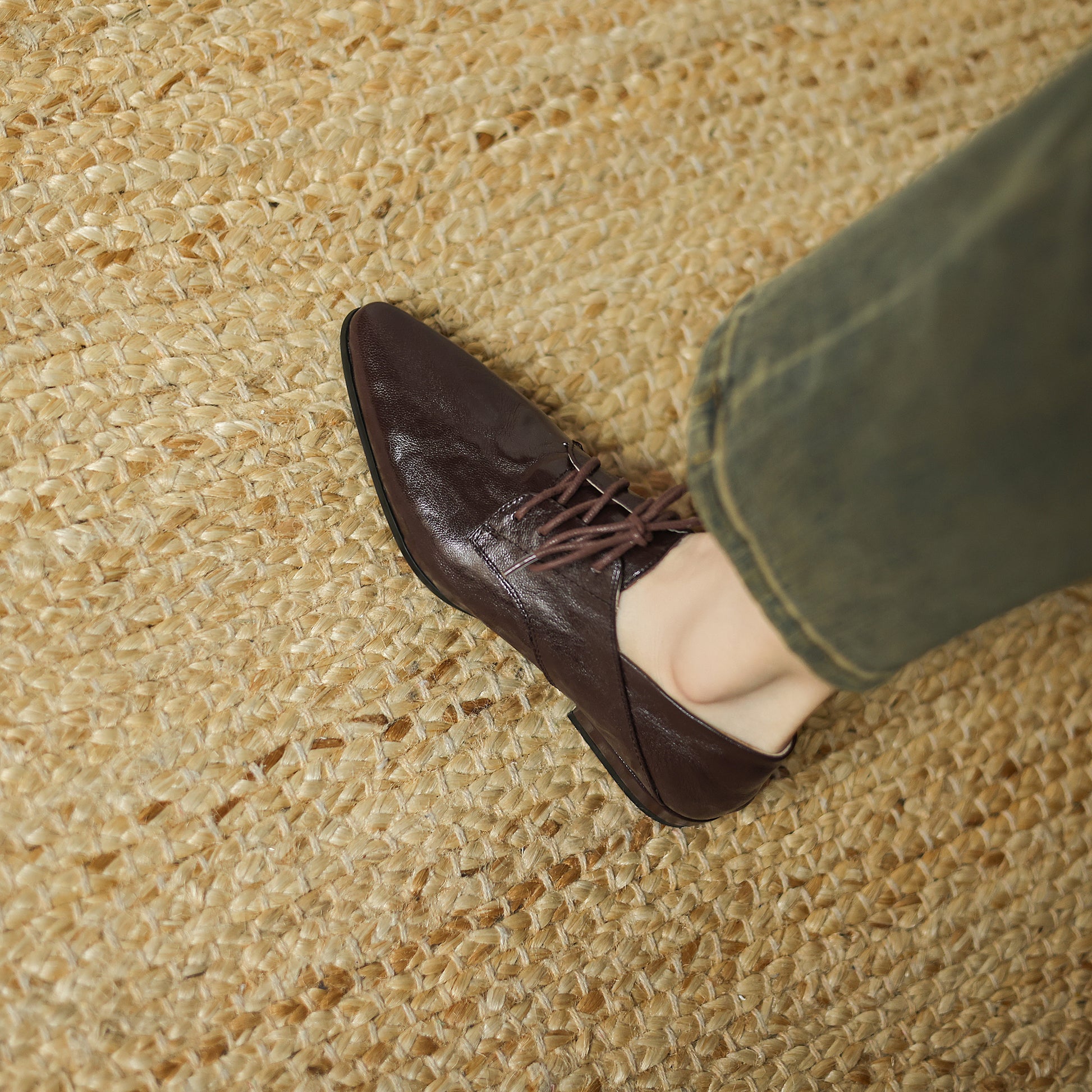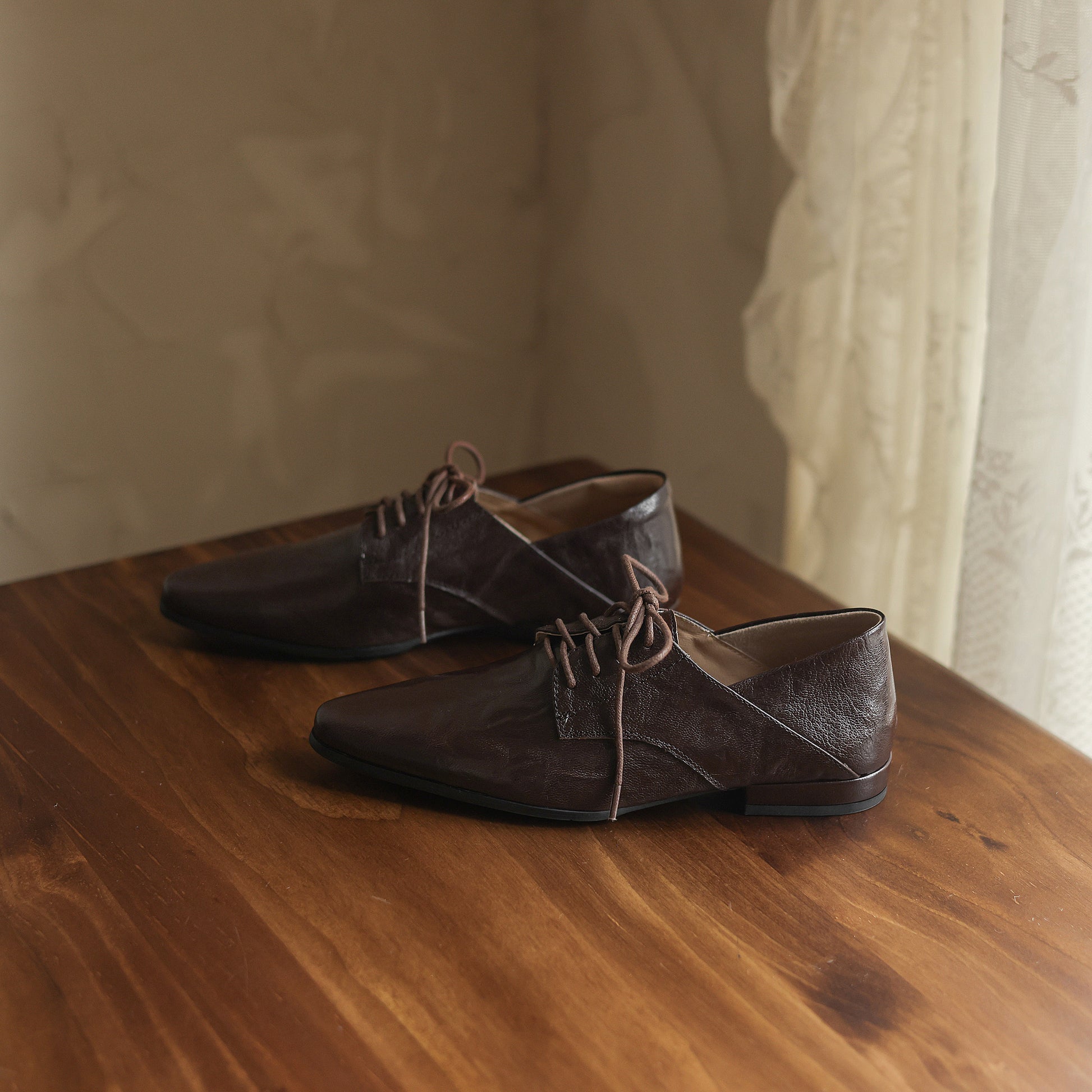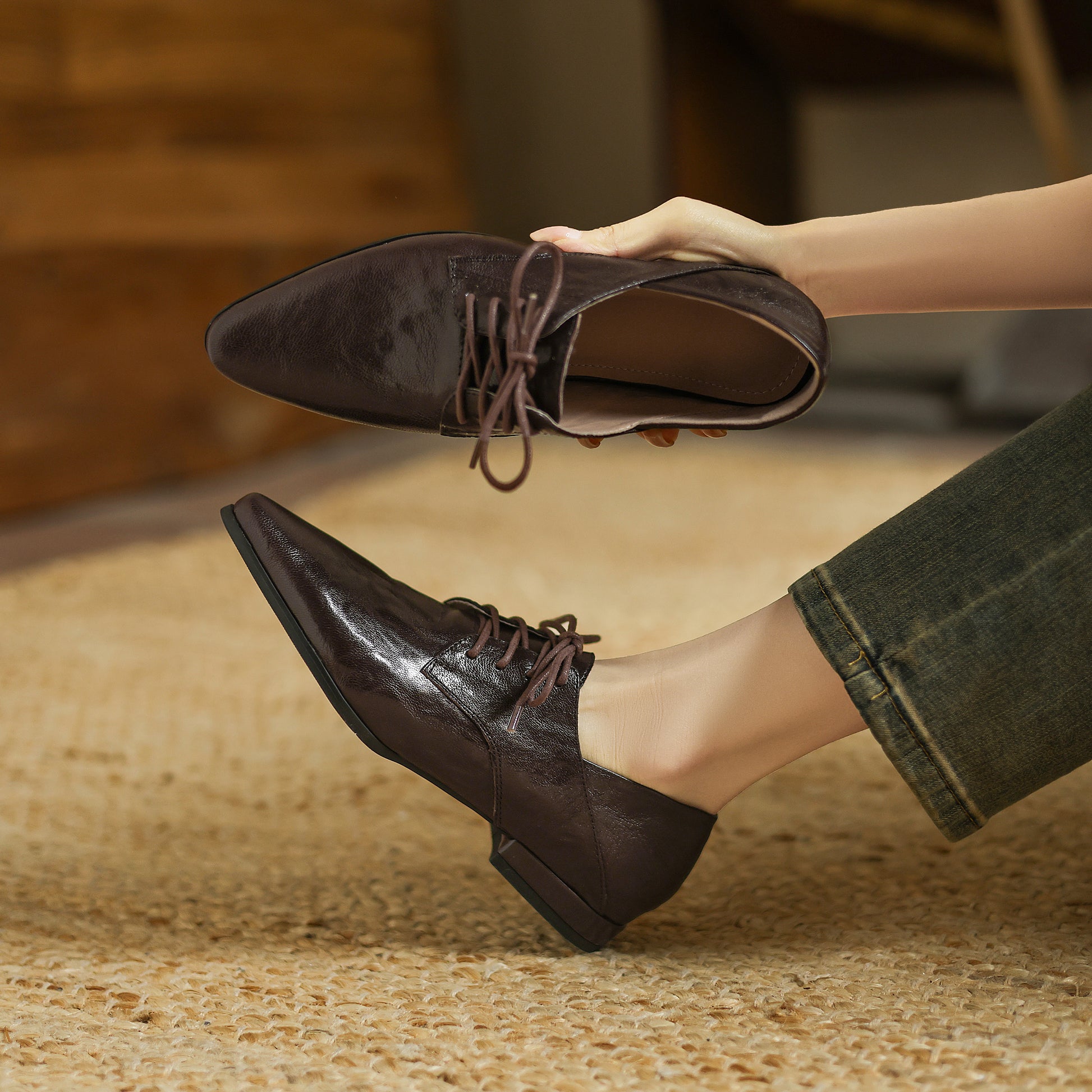 TinaCus Handmade Women's Genuine Leather Pointed Toe Lace-up Classic Oxford Flats