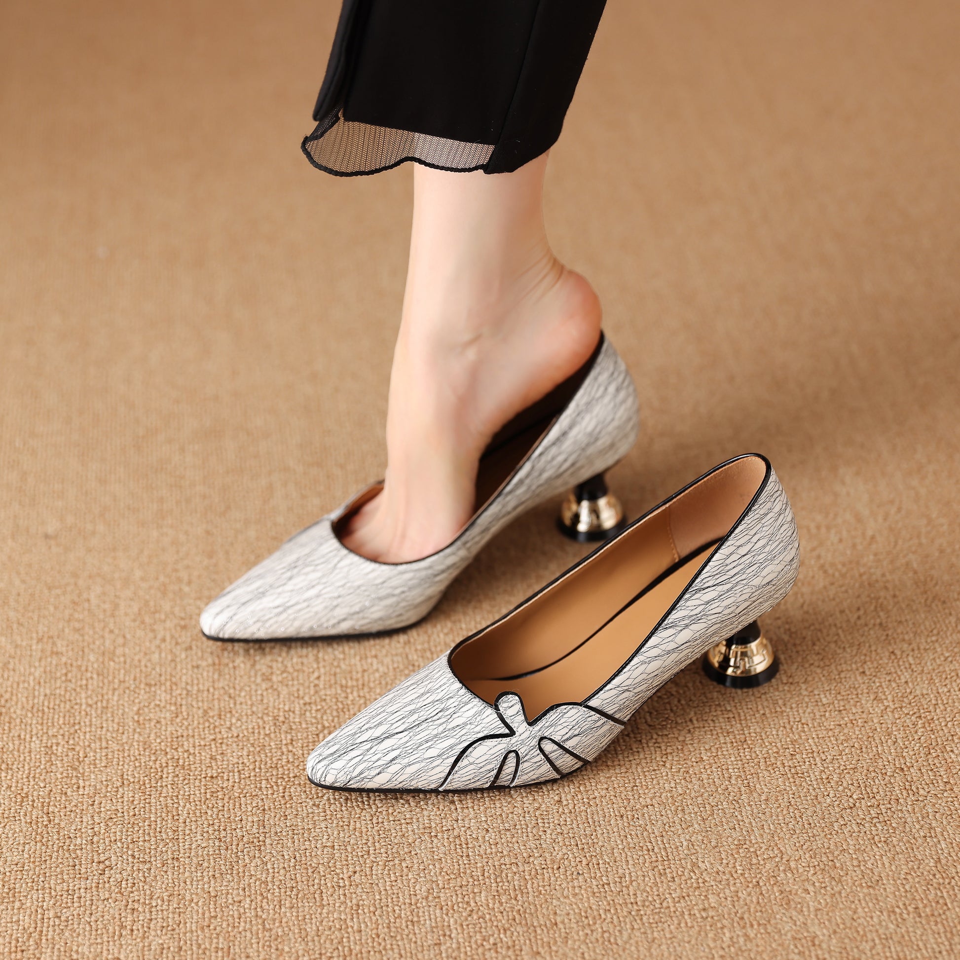 With leather uppers and stylish prints, these pointy-toe pumps effortlessly go with both casual and dressy outfits.