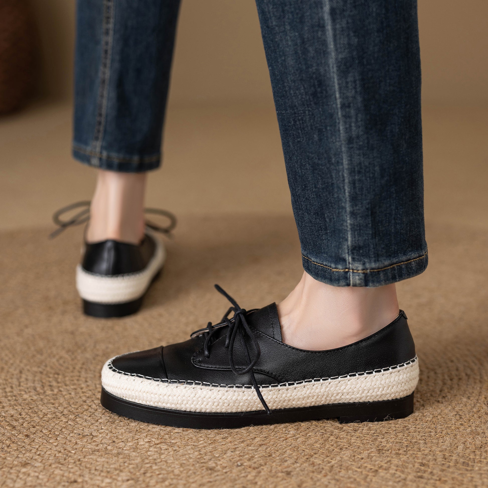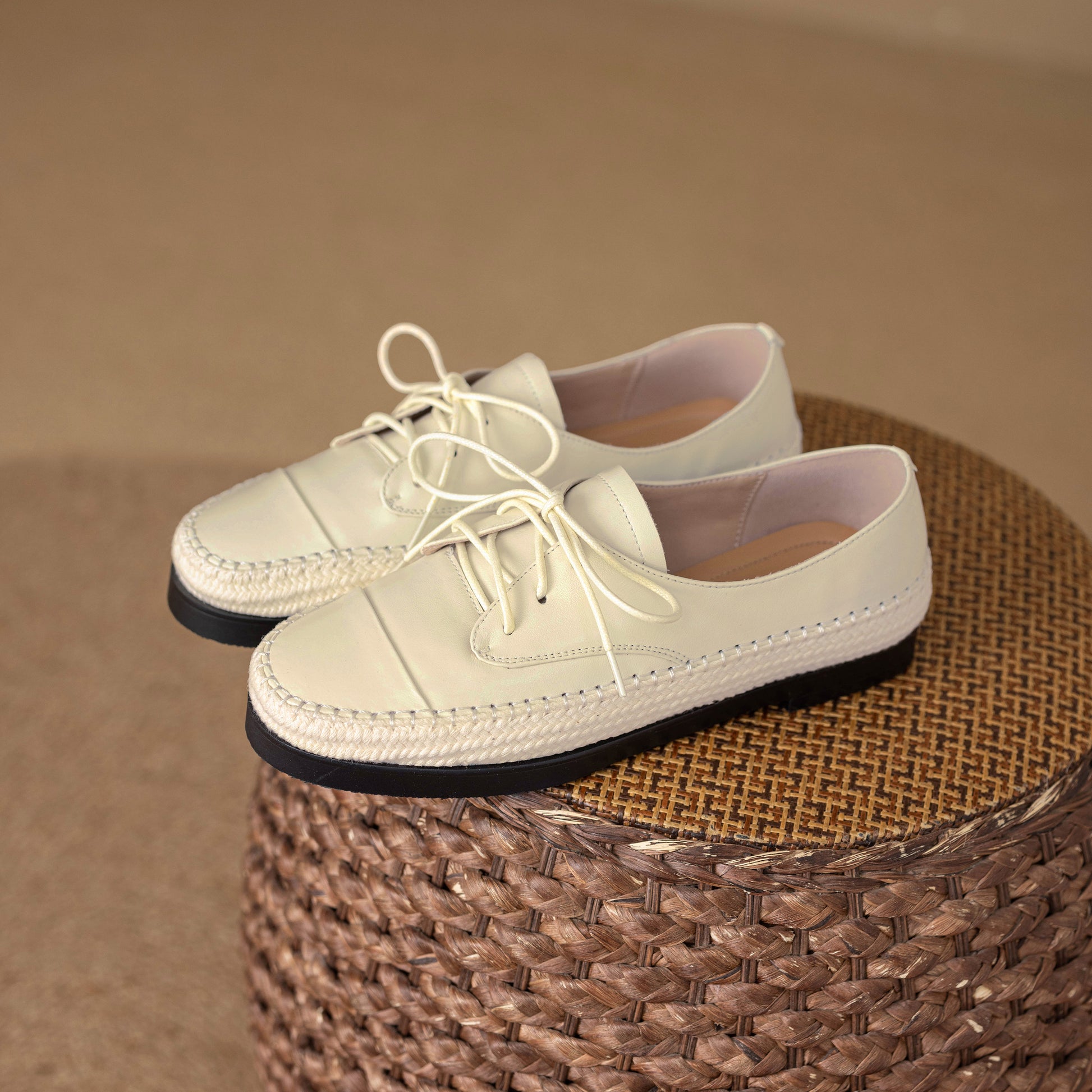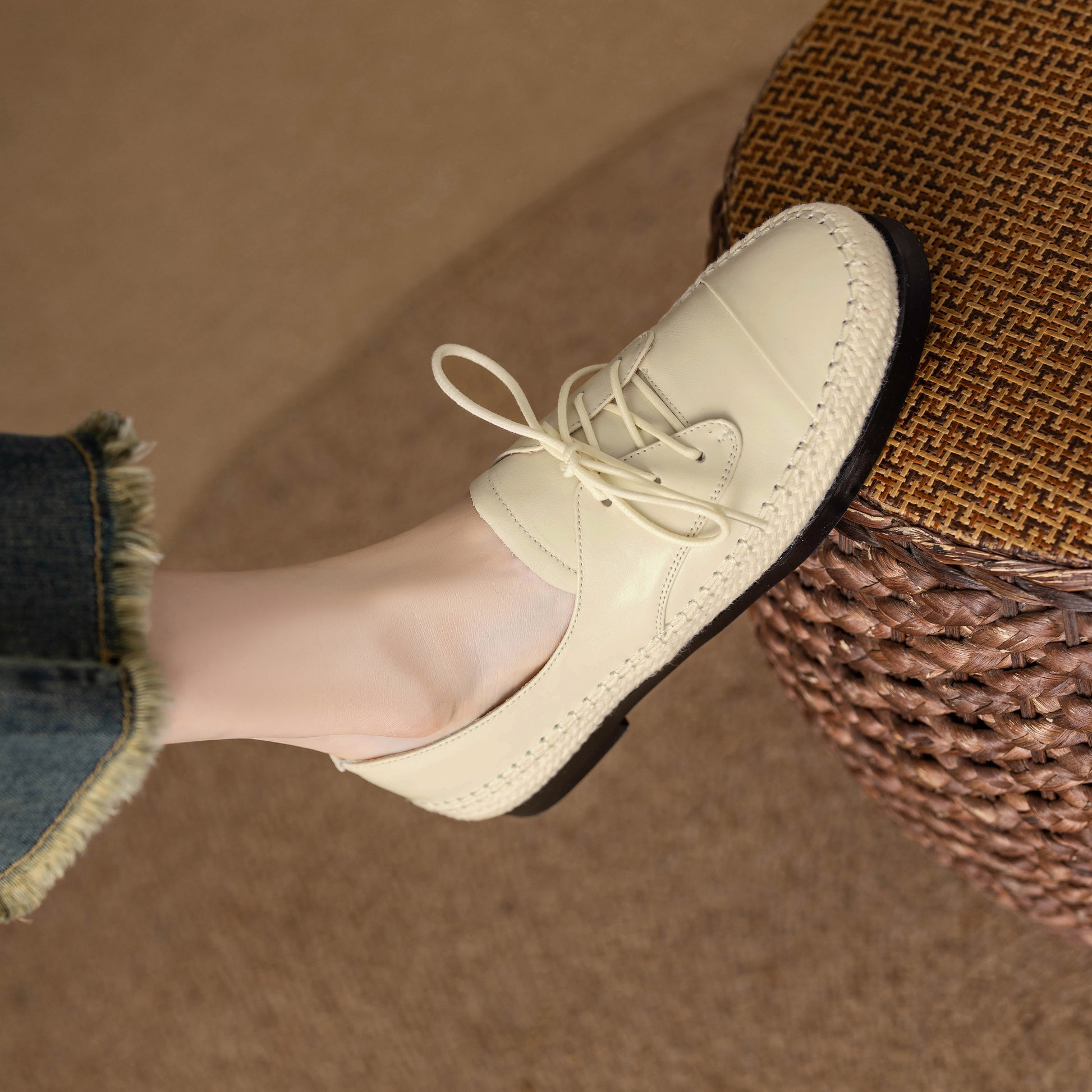 TinaCus Handmade Women's Genuine Leather Round Toe Lace up Soft Office Loafer Flats Shoes