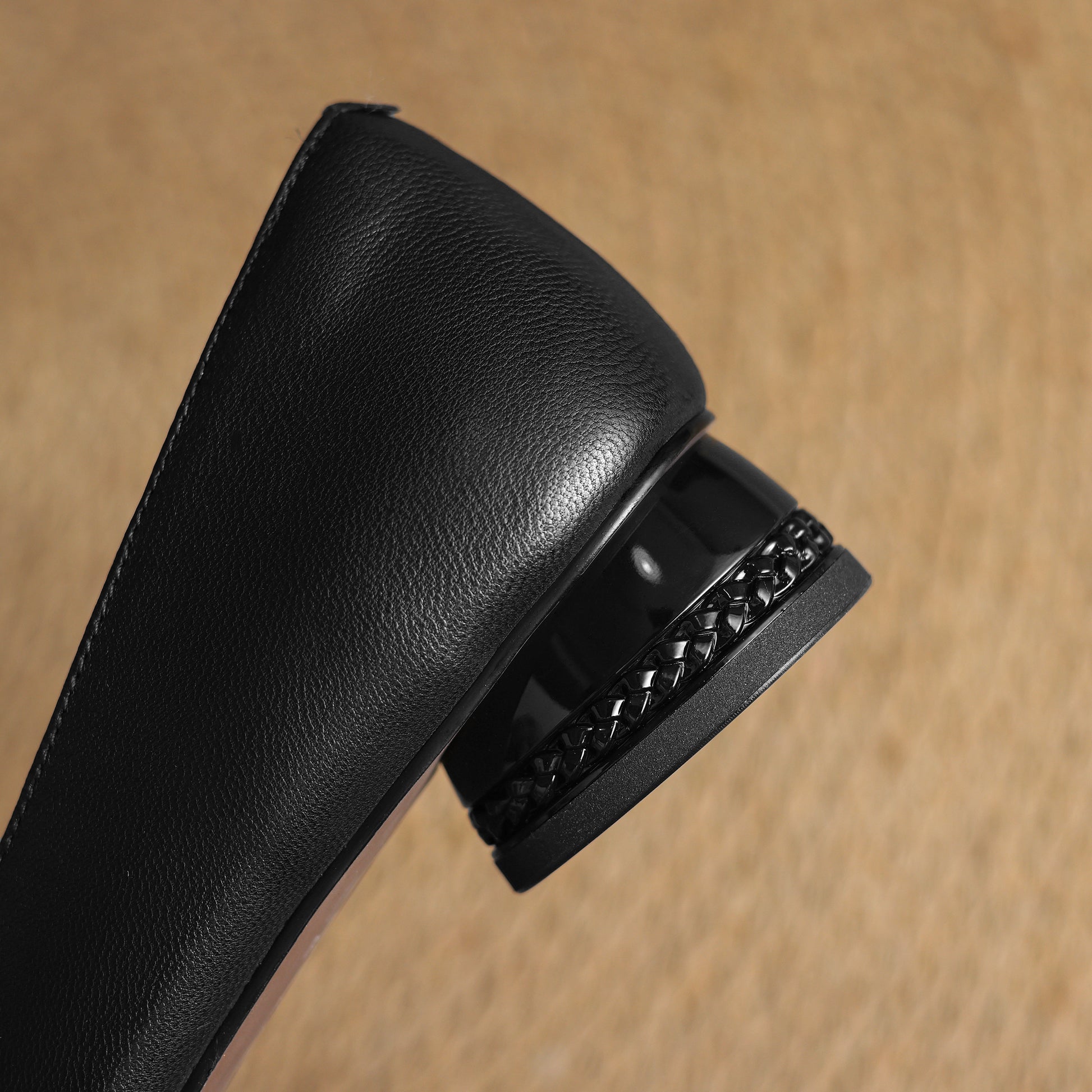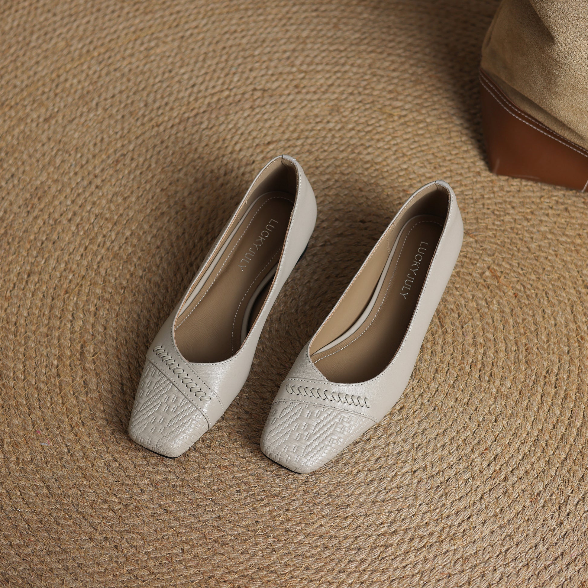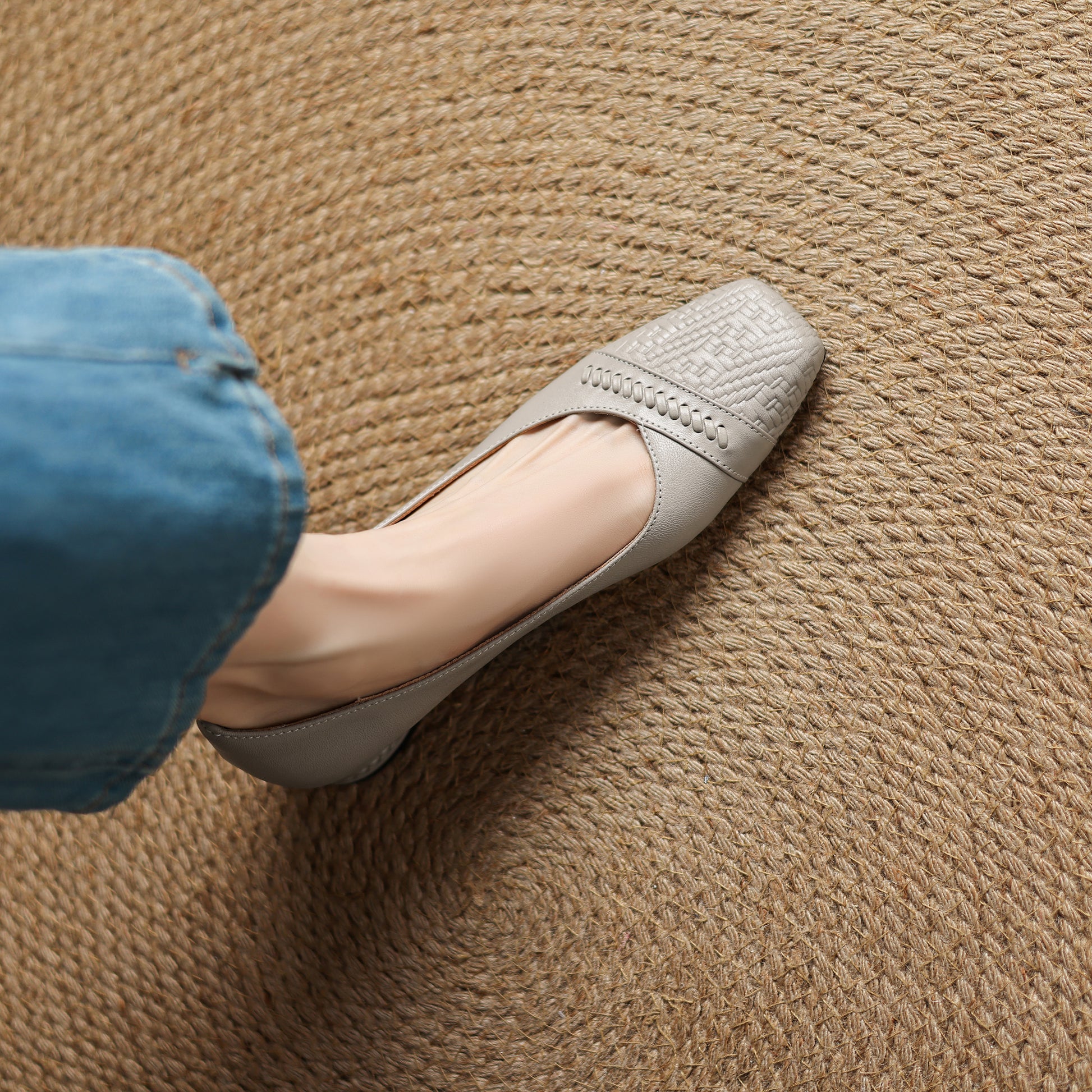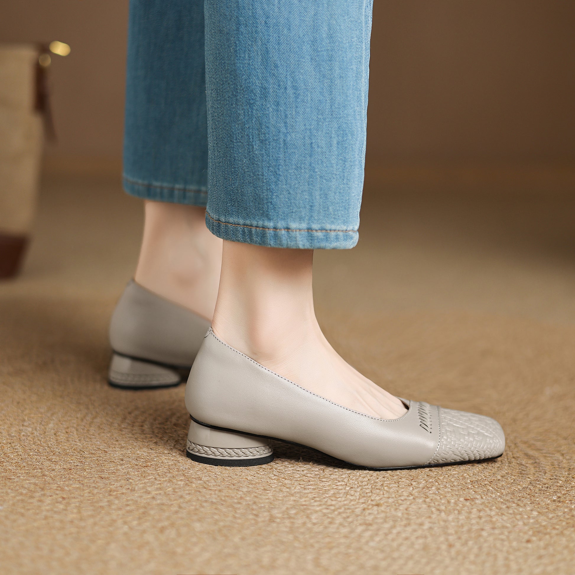 TinaCus Handmade Women's Genuine Leather Square Toe Stitching Chunky Heel Ballet Pump Shoes