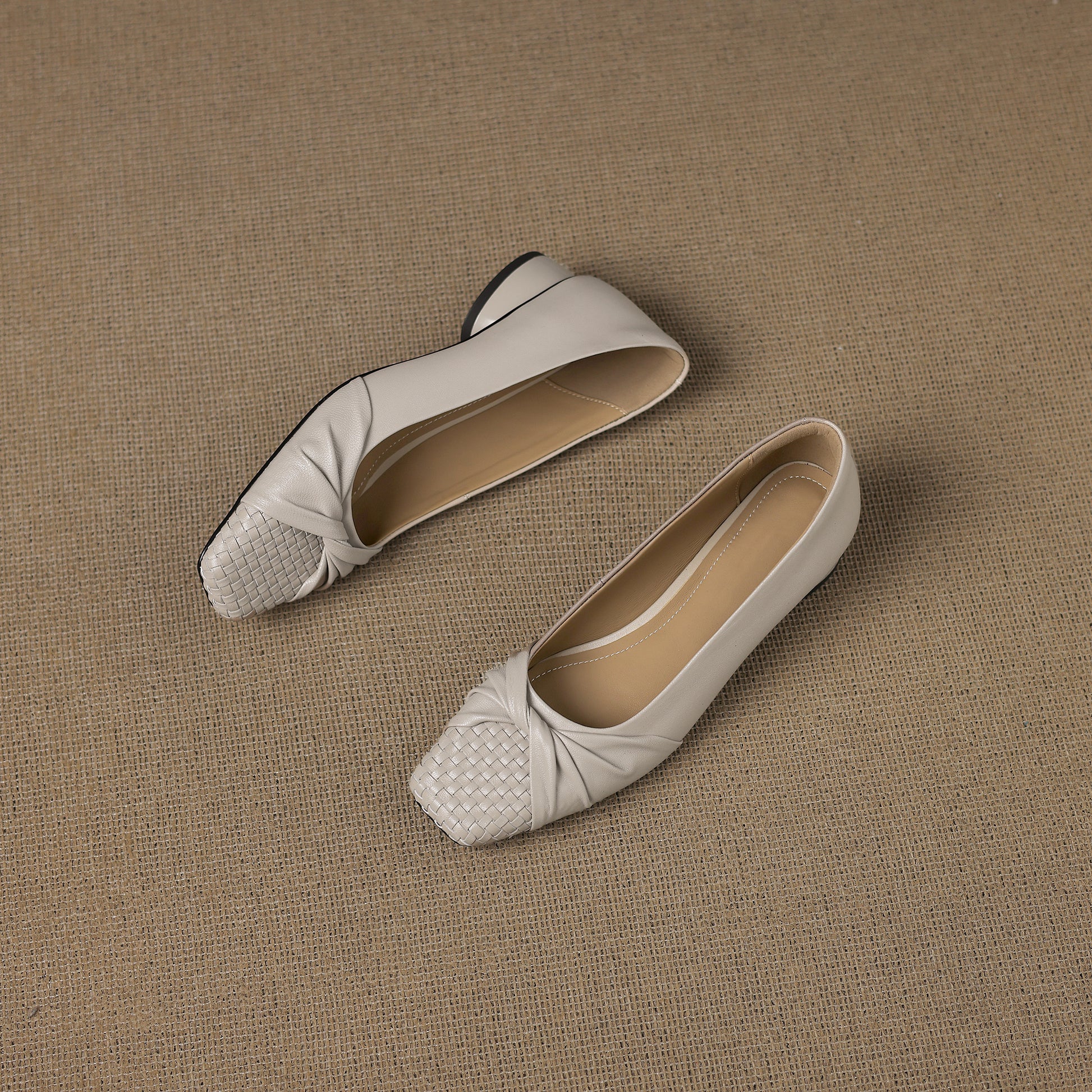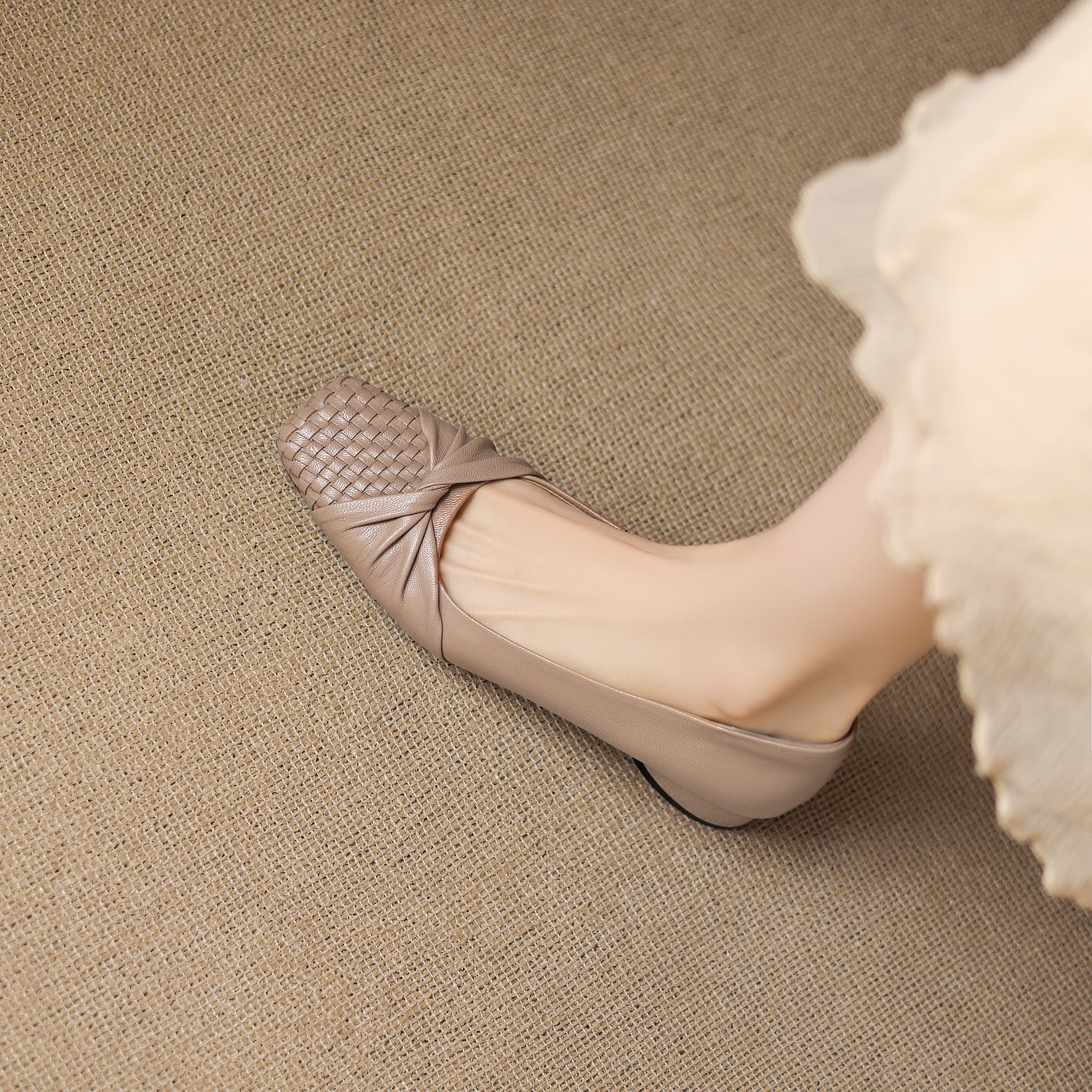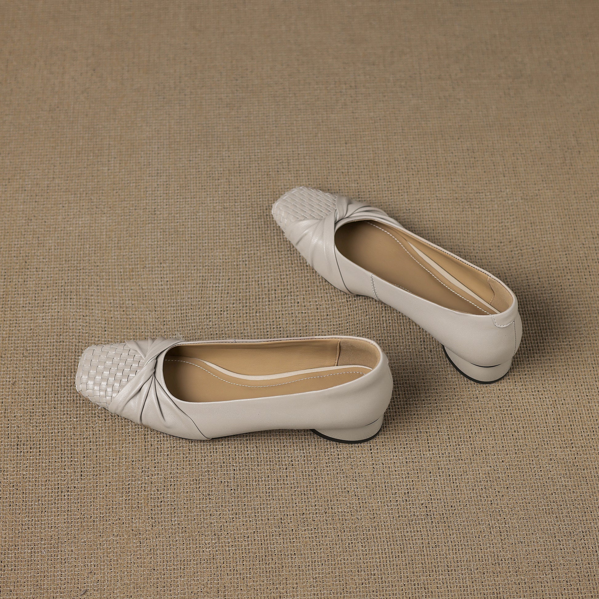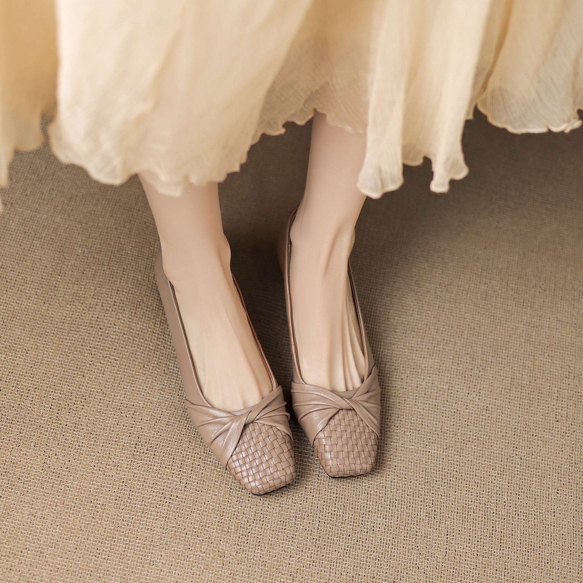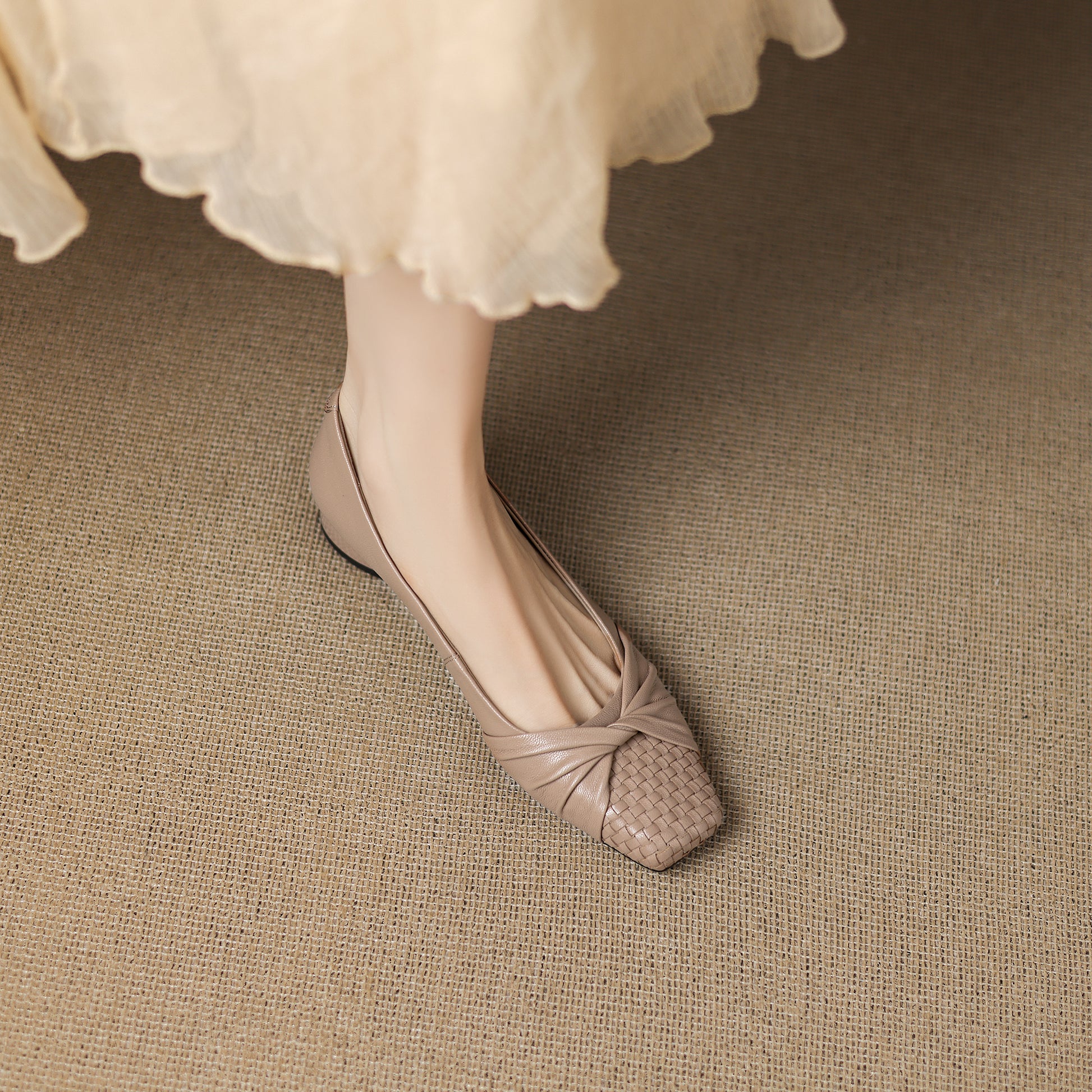 TinaCus Handmade Women's Genuine Leather Square Toe Woven Twist Knot Chunky Heel Casual Slip On Pump Shoes