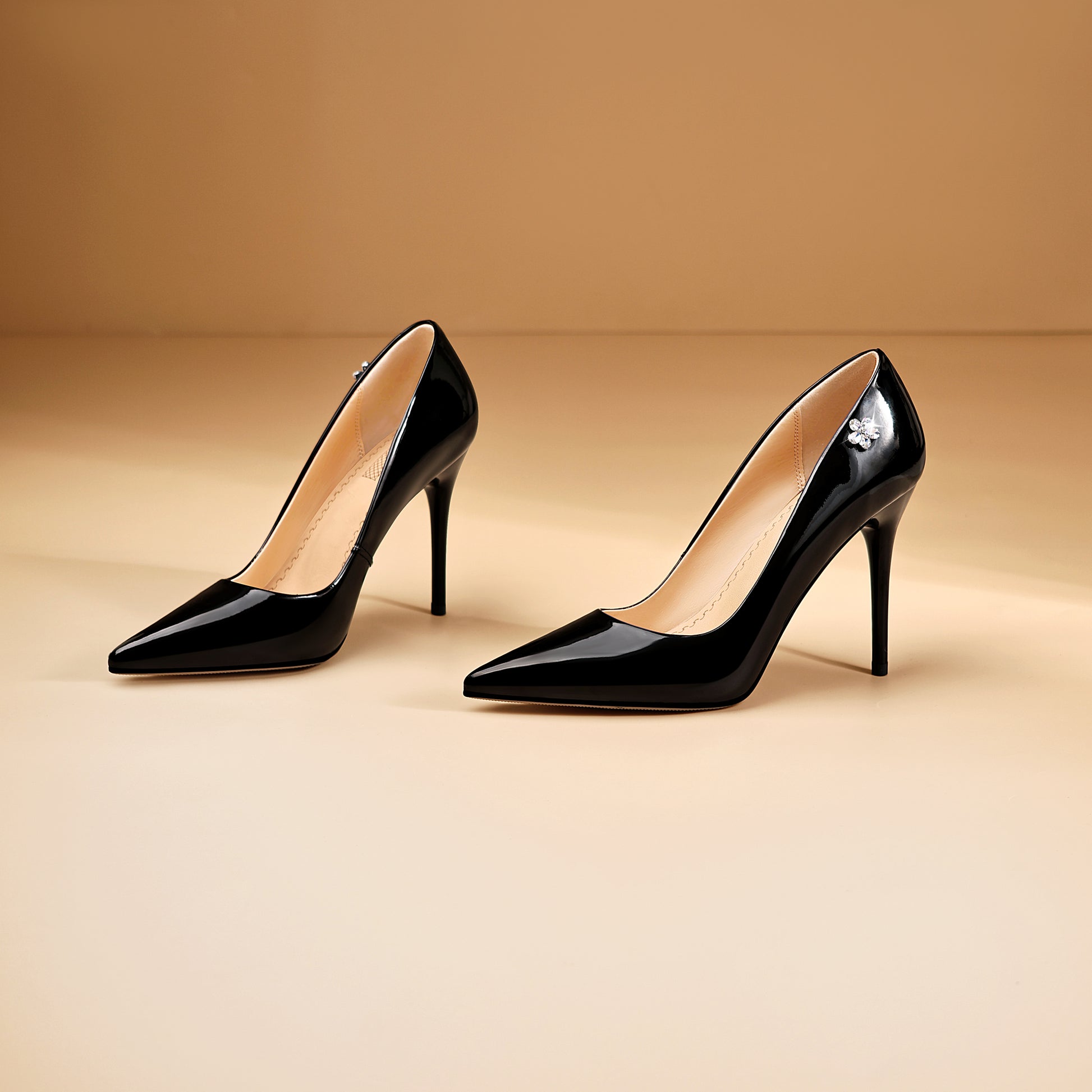 TinaCus Handmade Women's Genuine/Patent Leather Rhinetone Flower Pointed Toe Sexy Stiletto Heel Pump Shoes