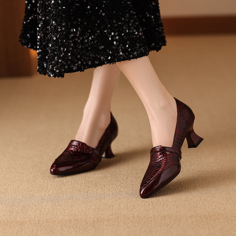 TinaCus Handmade Women's Patent Leather Crocodile Print Pointed Toe Low Heel Loafers Shoes
