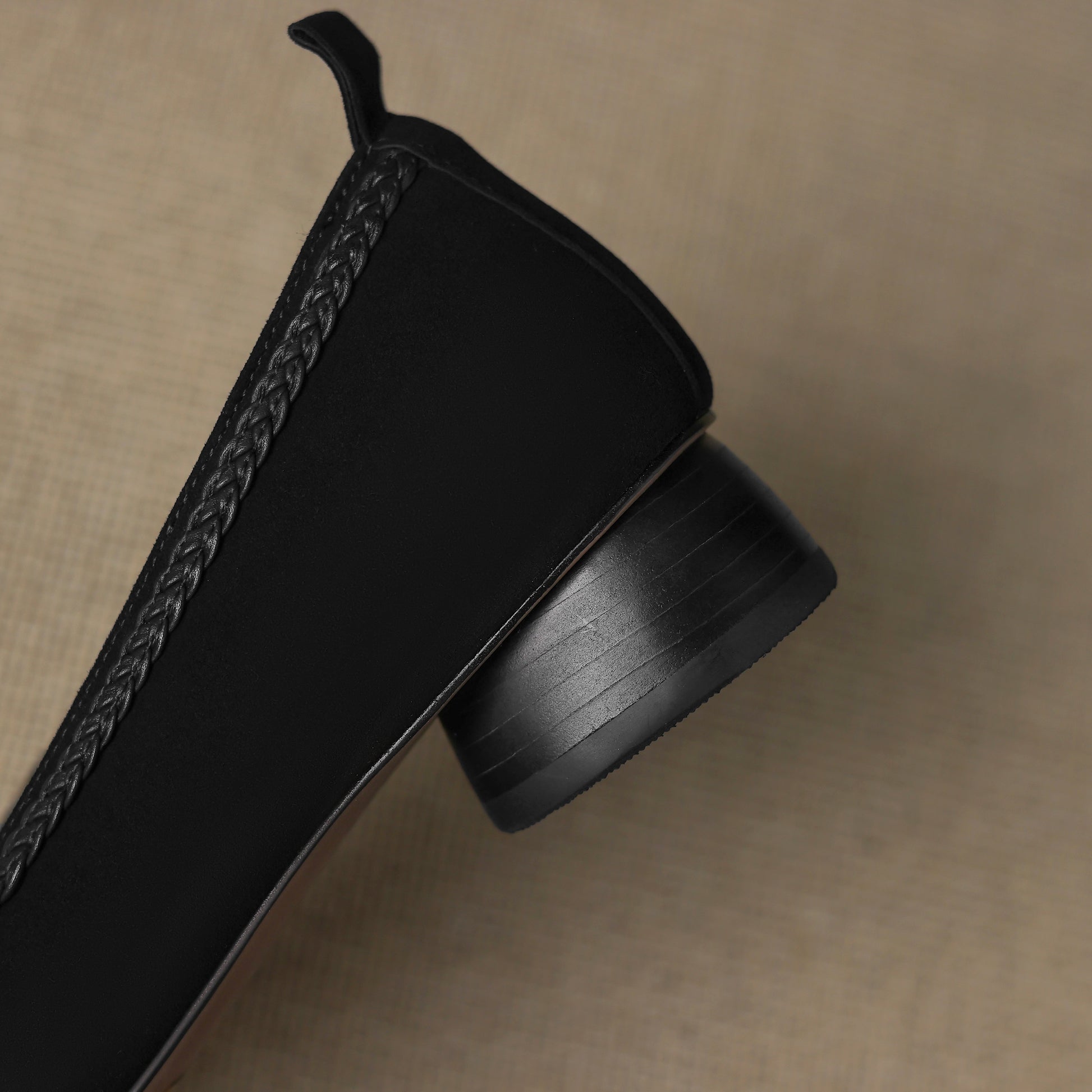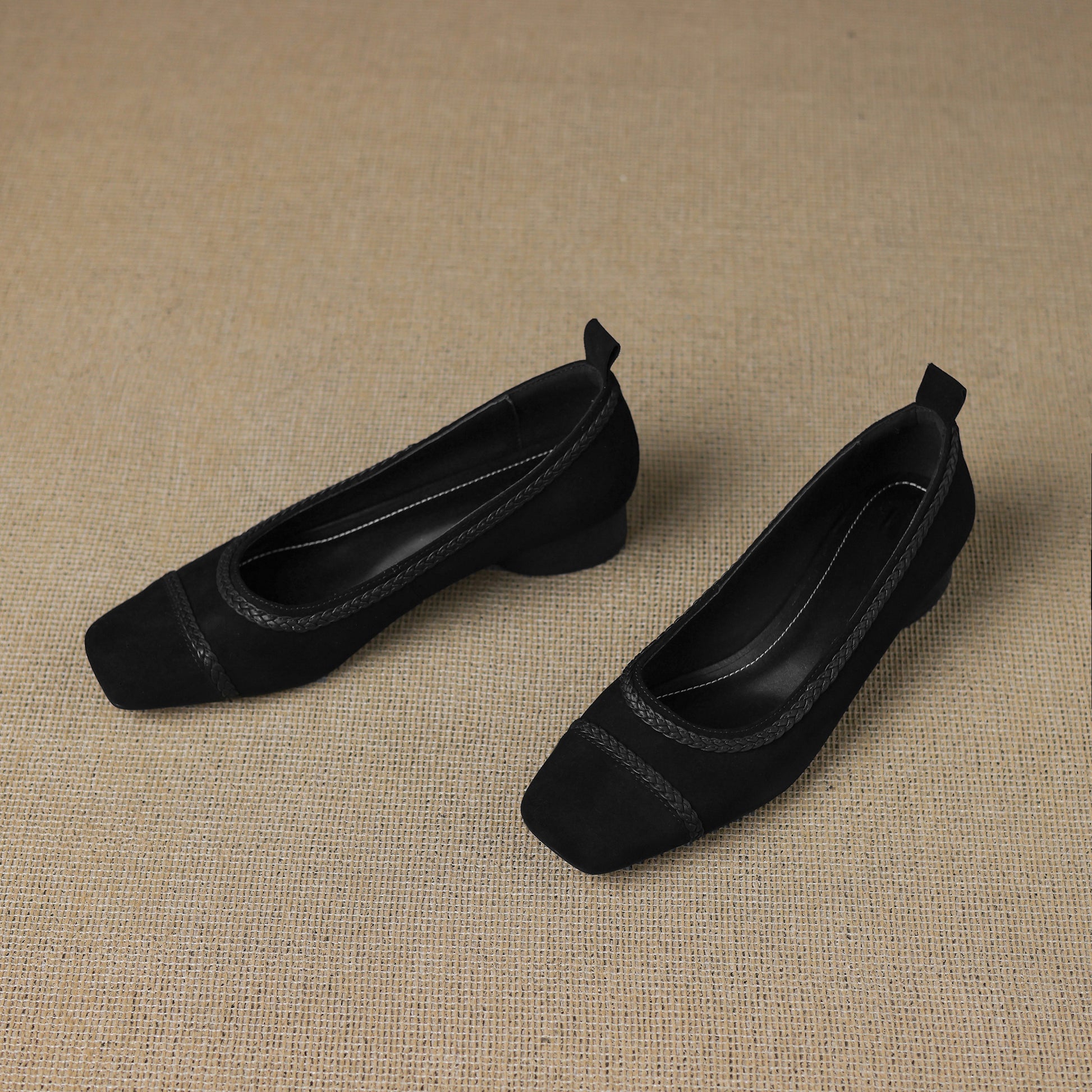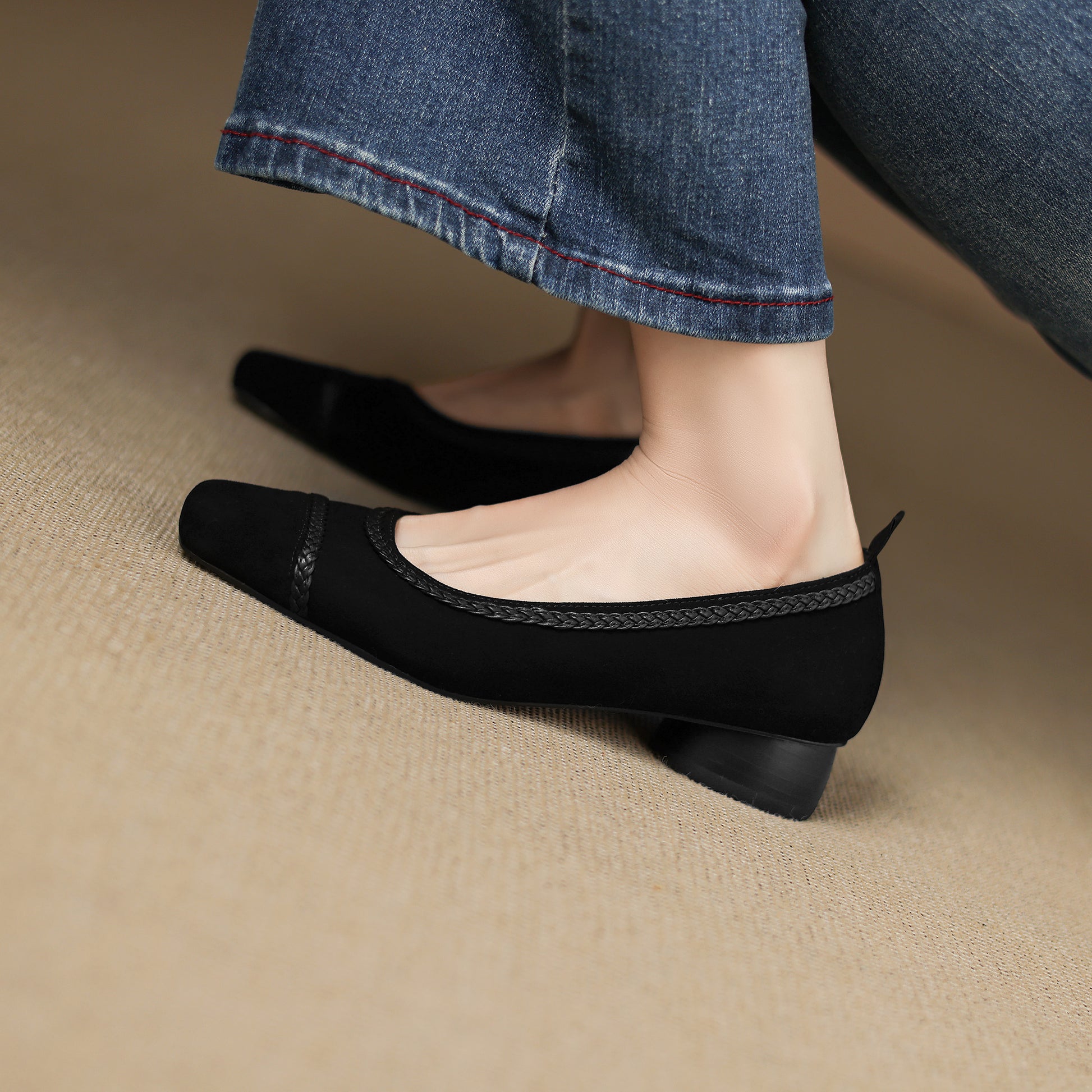 TinaCus Handmade Women's Suede Leather Toe Braided Stacked Heel Slip On Comfortable Pump Shoes