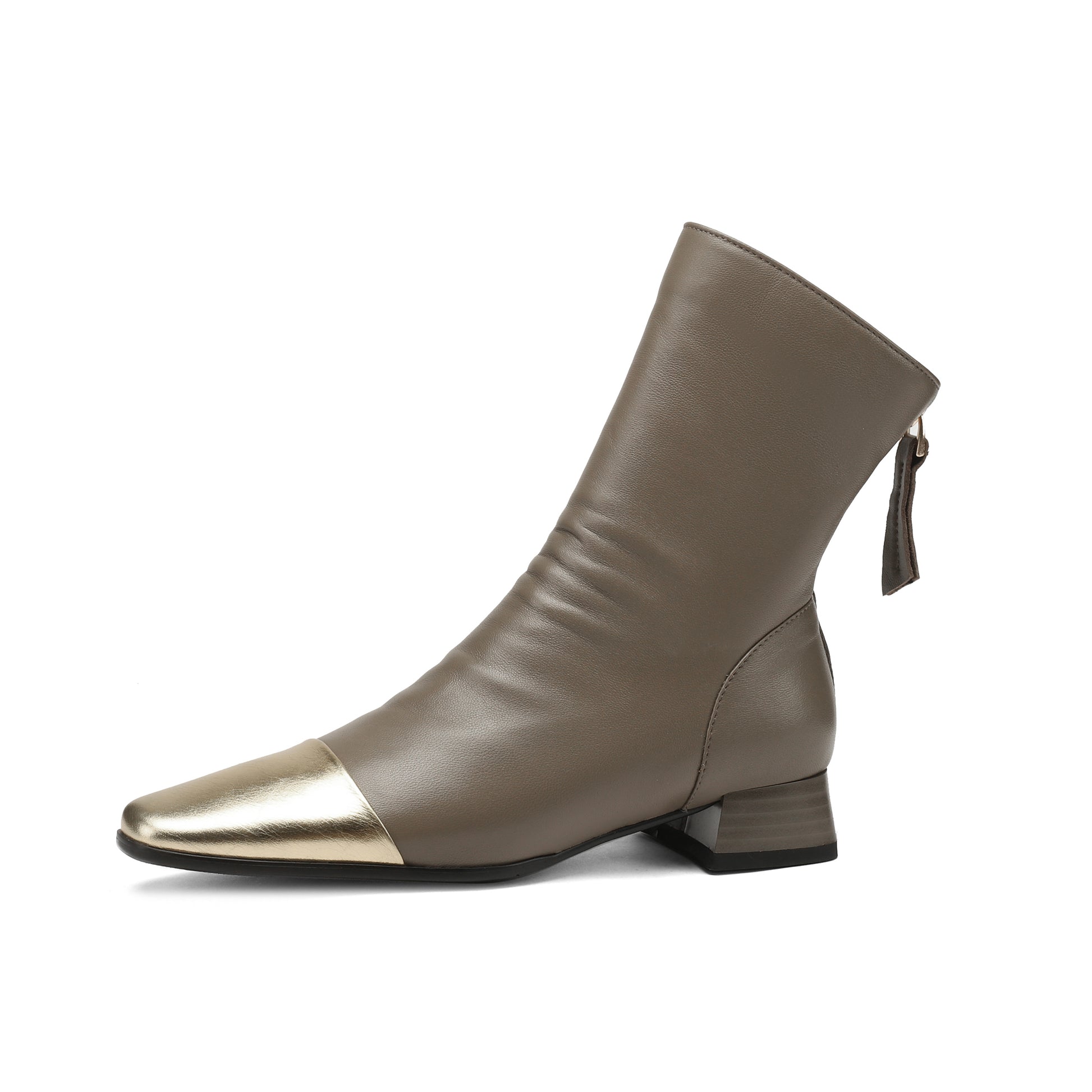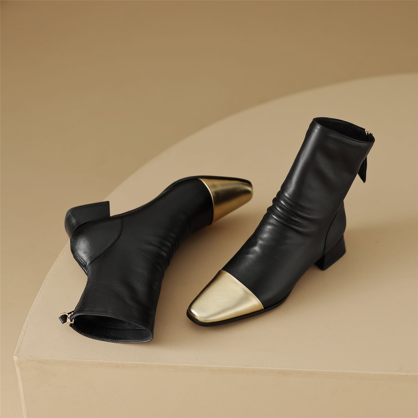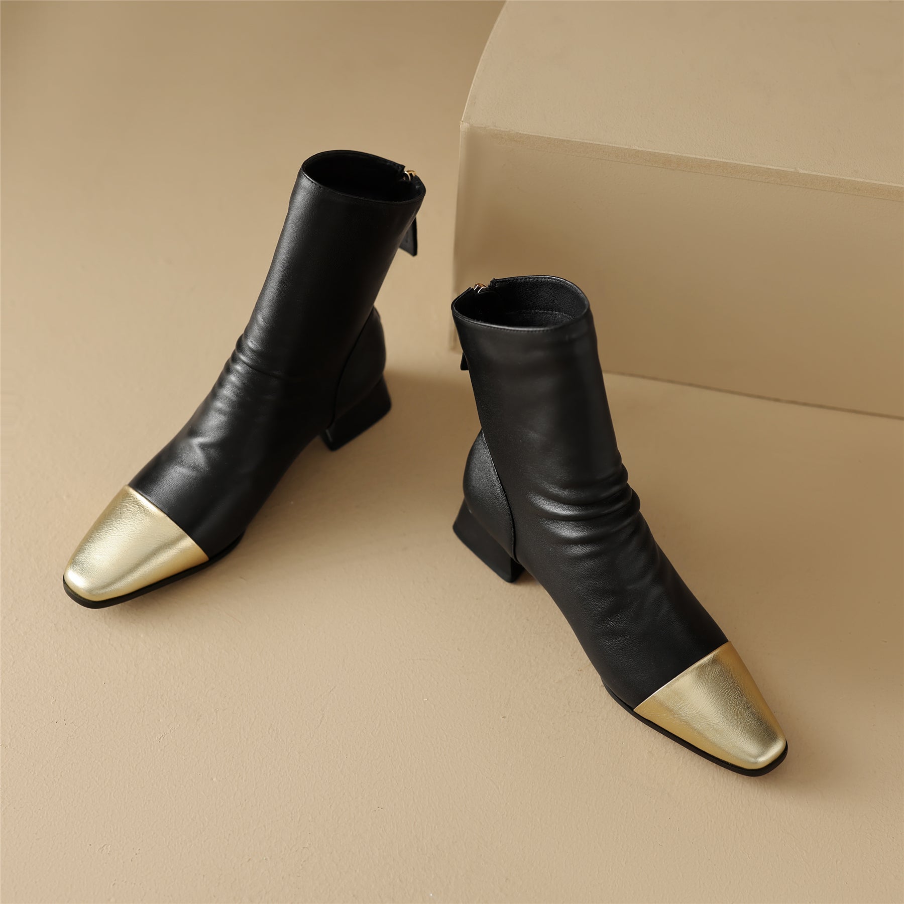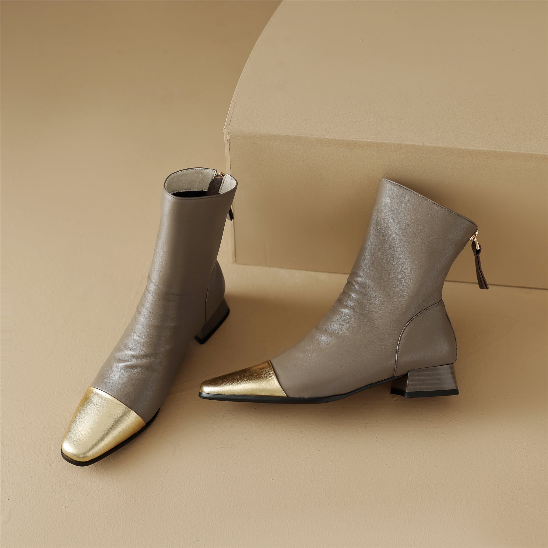 TinaCus Women's Cap-Toe Genuine Leather Handmade Low Heel Back Zip Up Ankle Boots