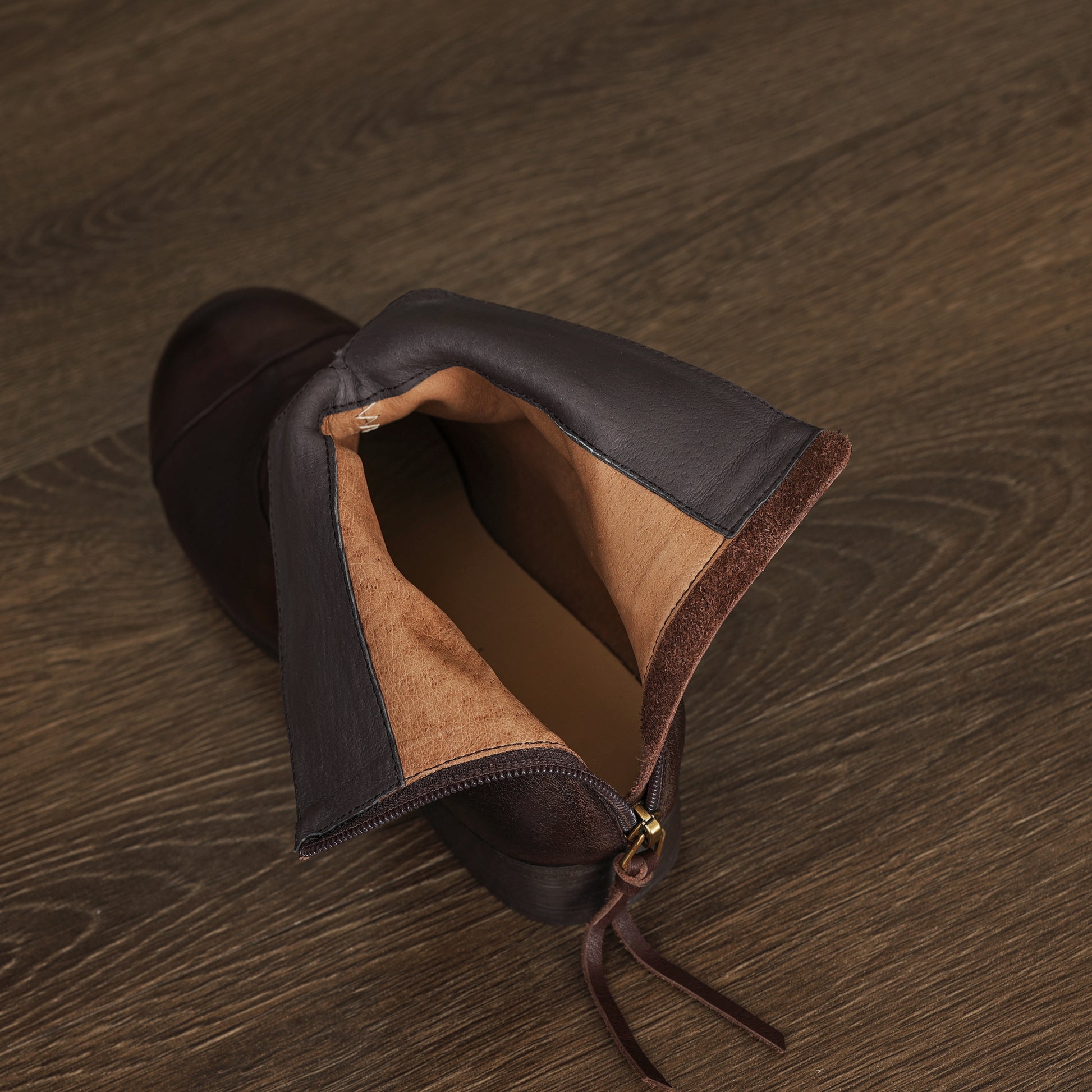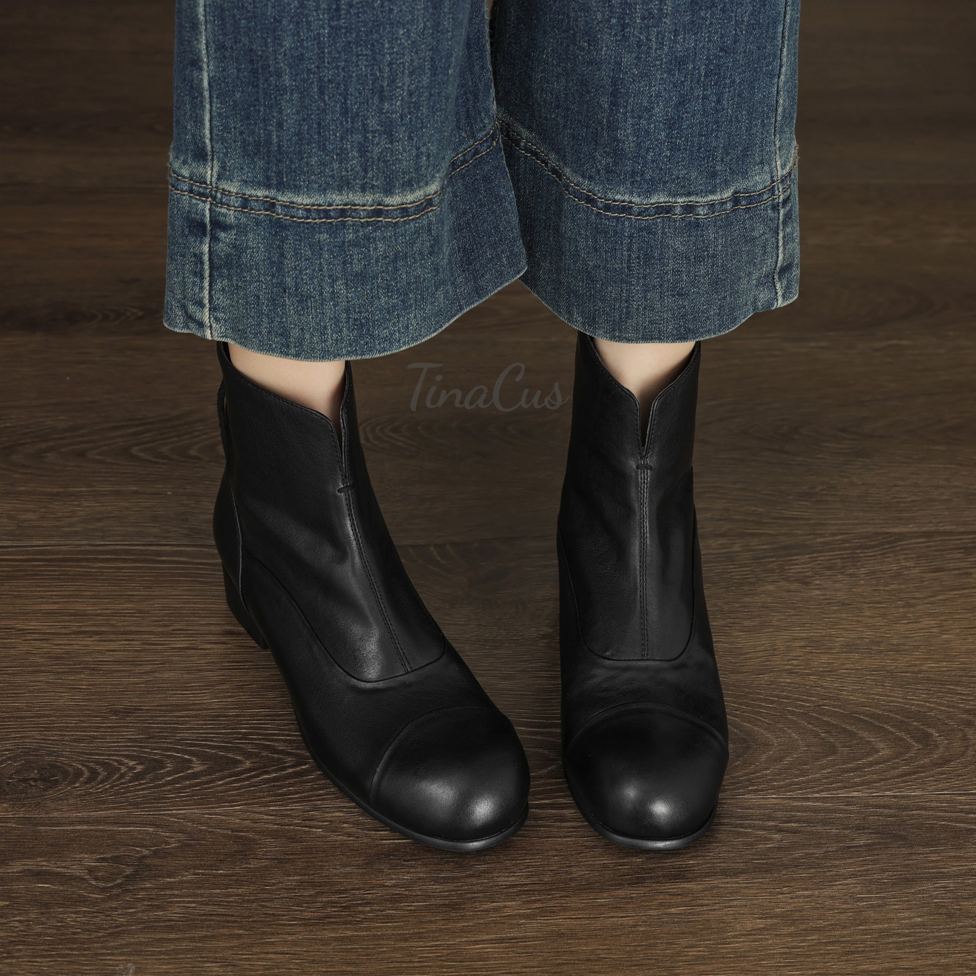 Ankle boots designed with round toe, genuine leather, flats and zipper can make you feel comfortable