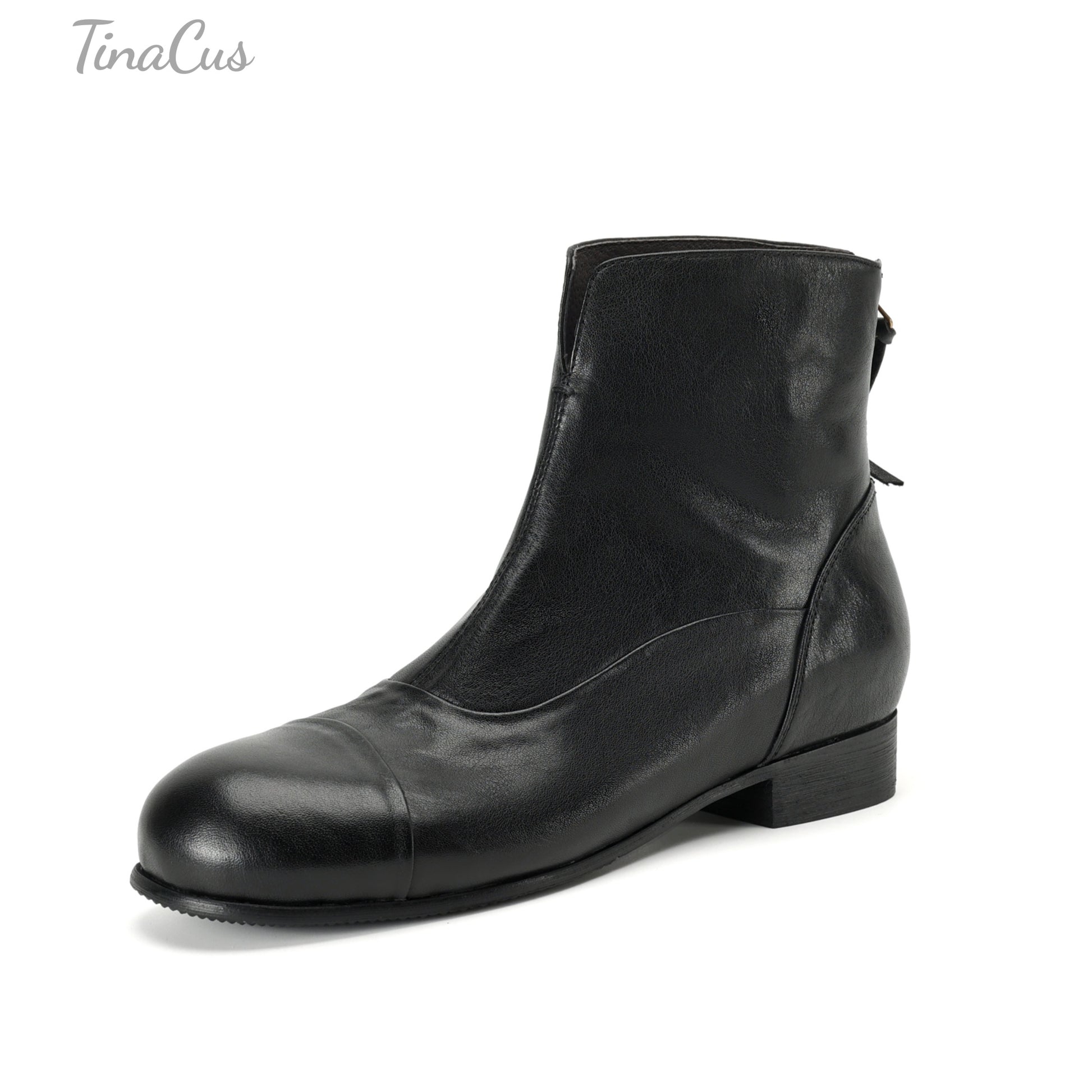 TinaCus Women's Casual Flat Ankle Boots Genuine Leather Handmade Round Toe Zip up Booties