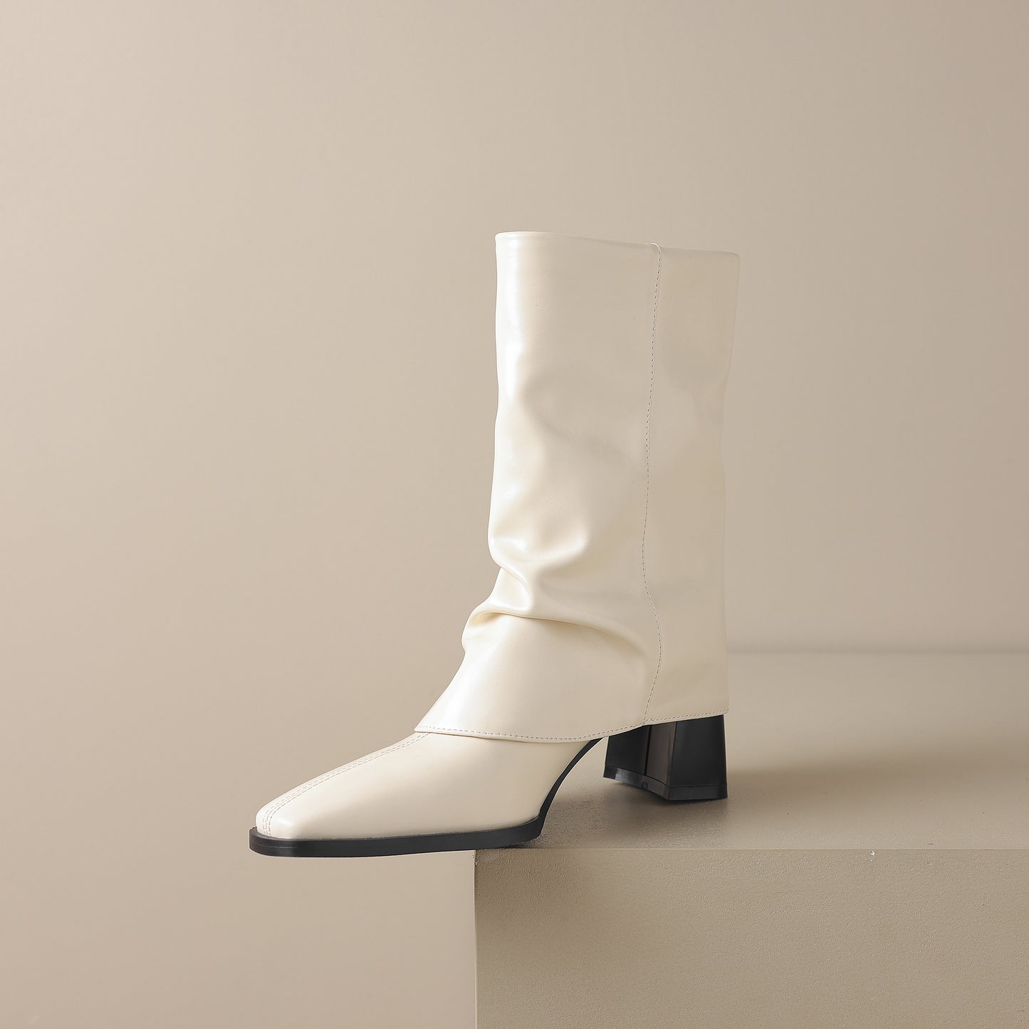 Mid calf boots are designed with genuine leather, block heel, square toe and pull on closure to keep up with fashion trend.
