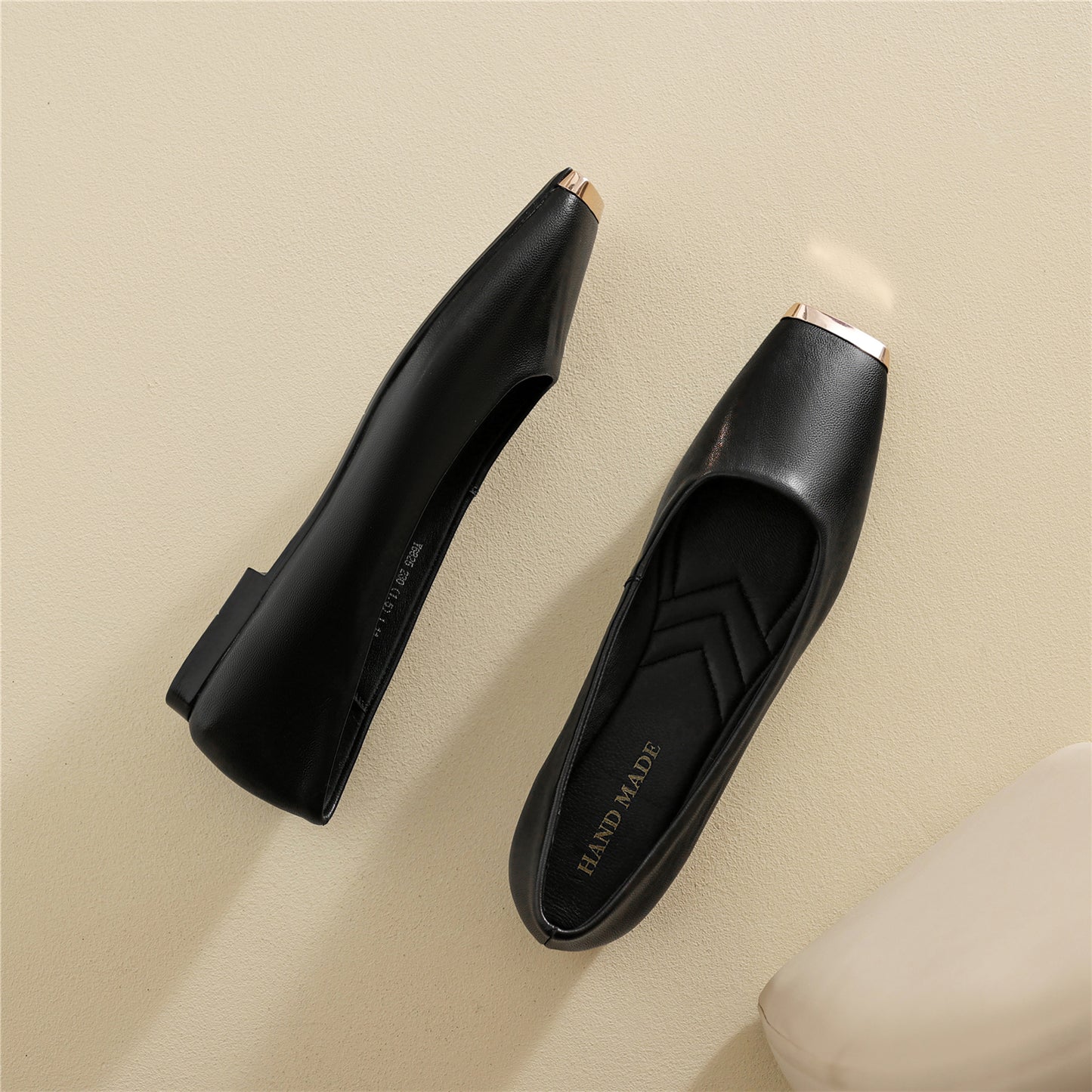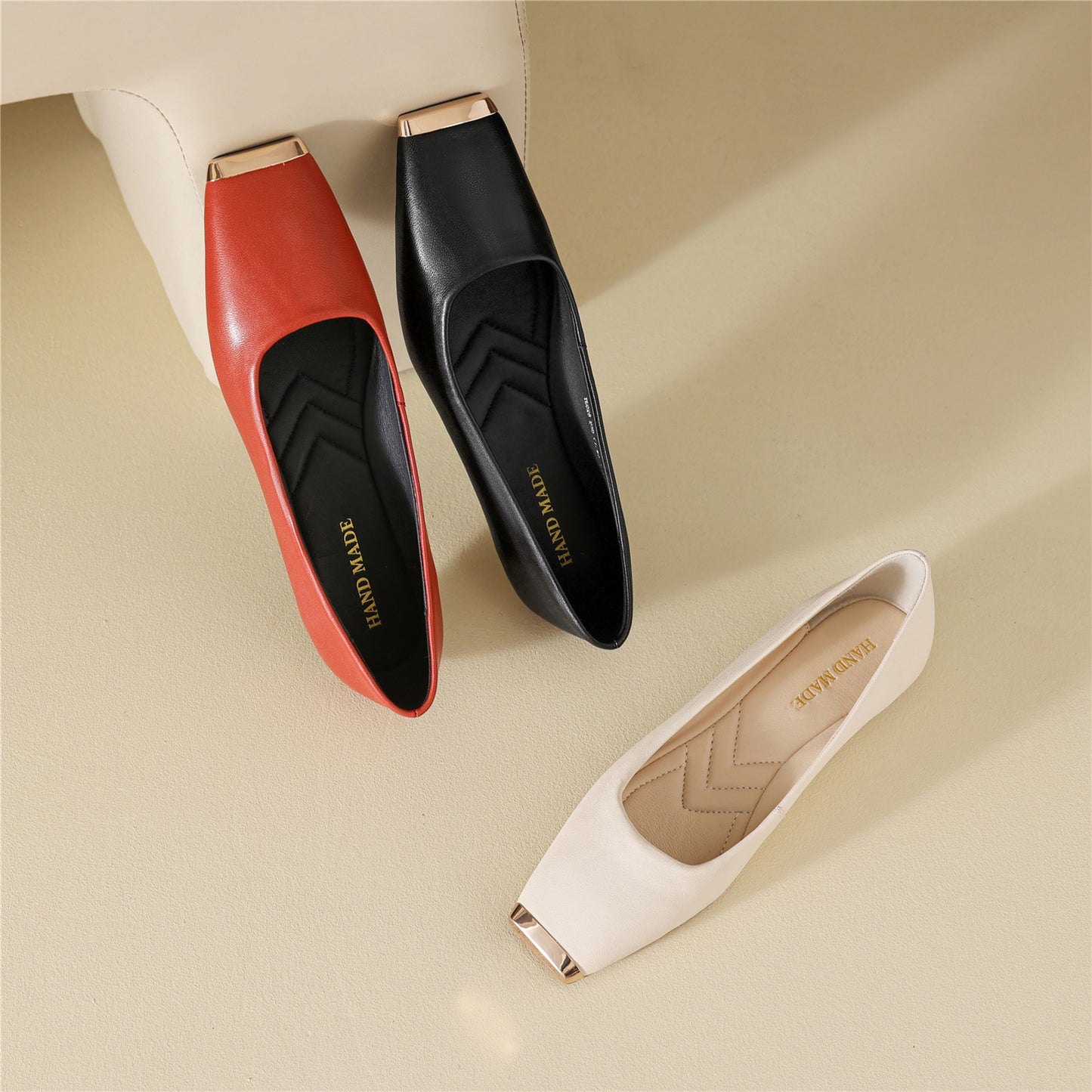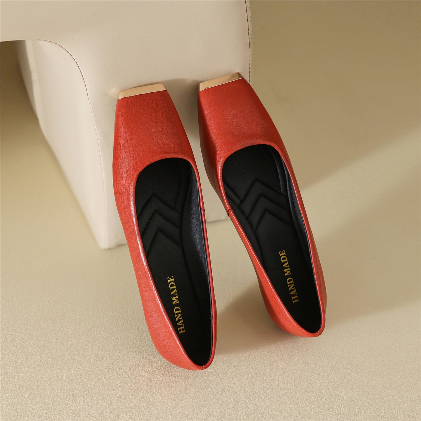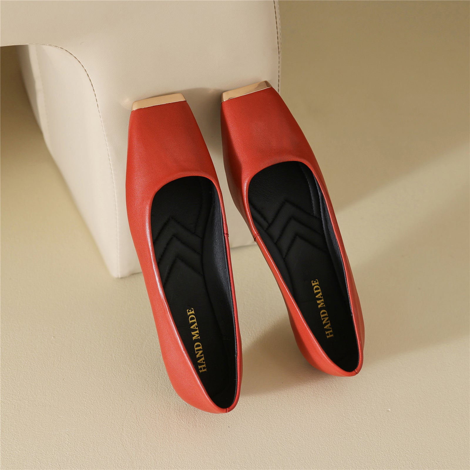 TinaCus Women's Genuine Leather Handmade Square Toe Slip On Flat Shoes