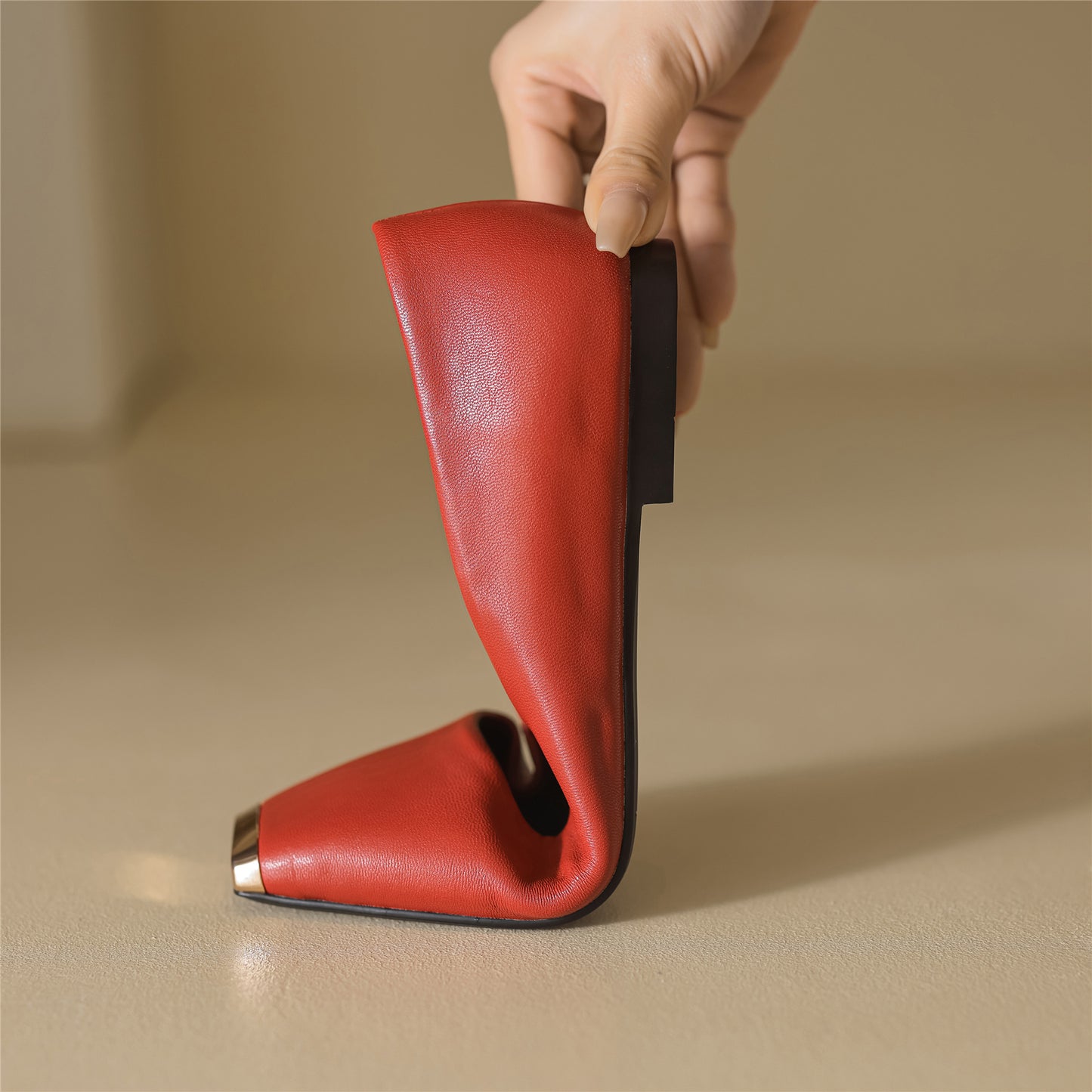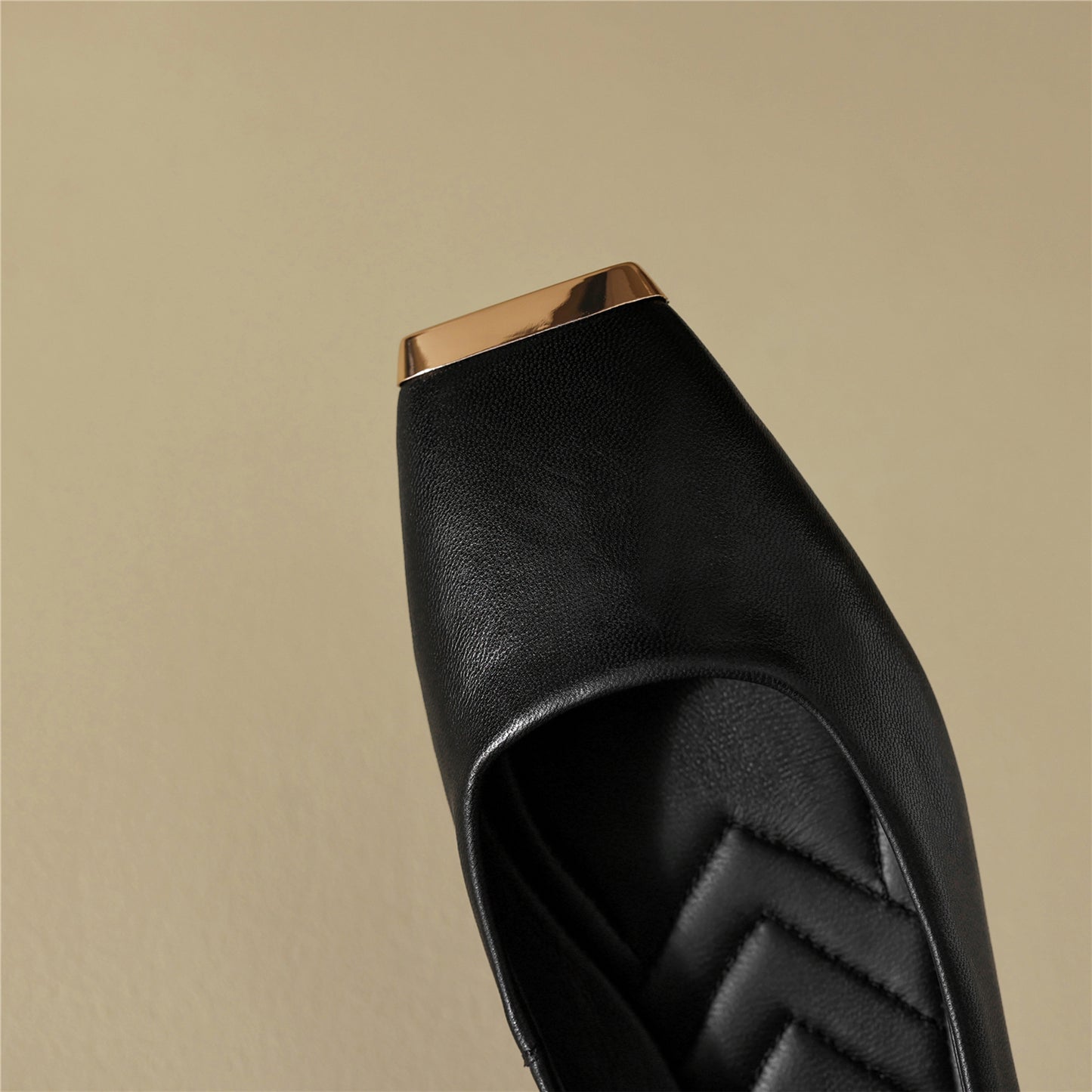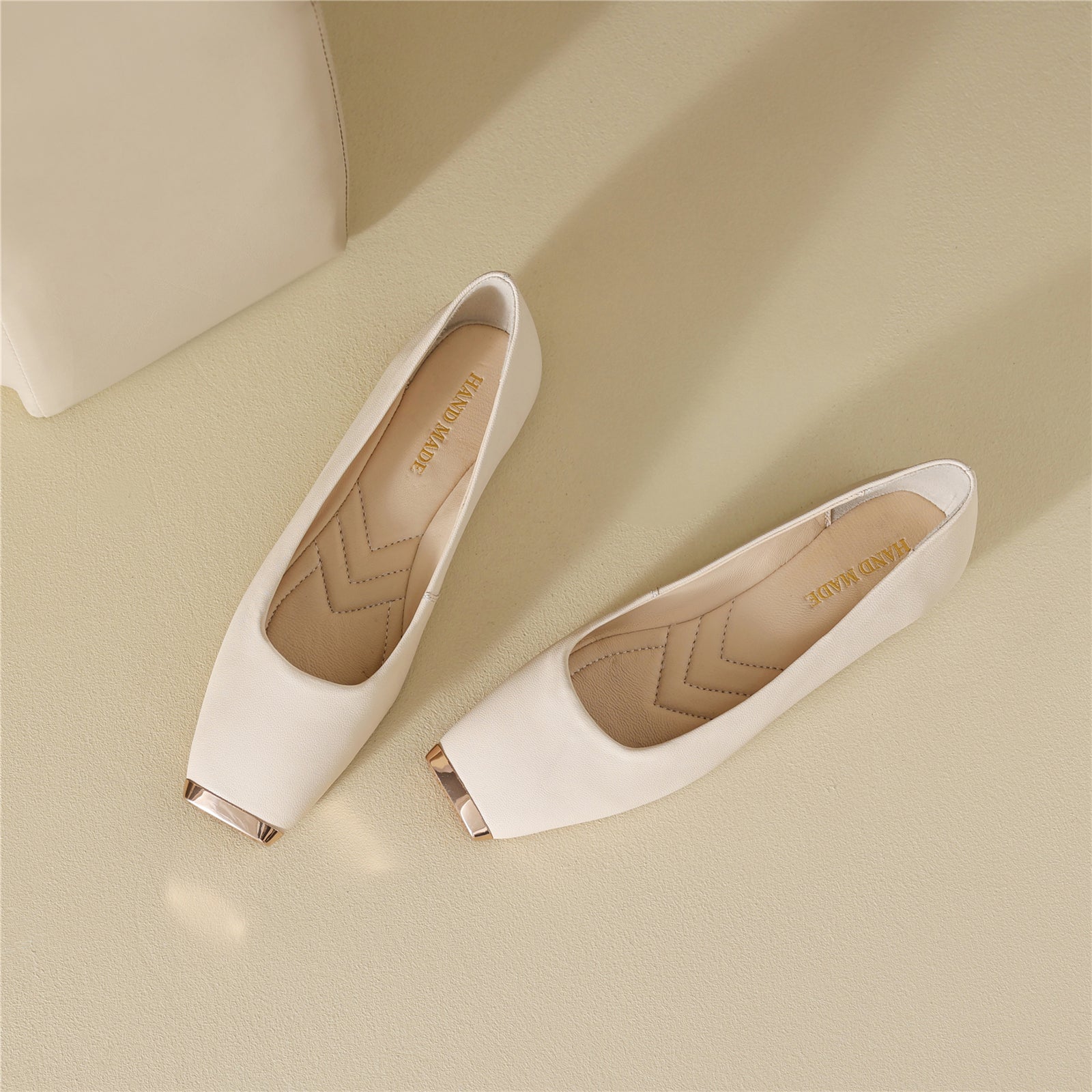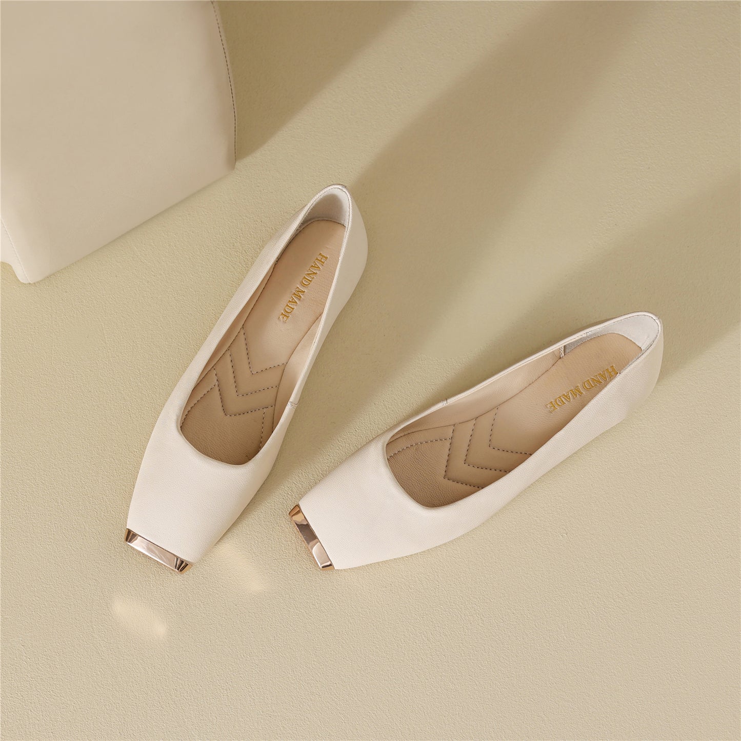 TinaCus Women's Genuine Leather Handmade Square Toe Slip On Flat Shoes