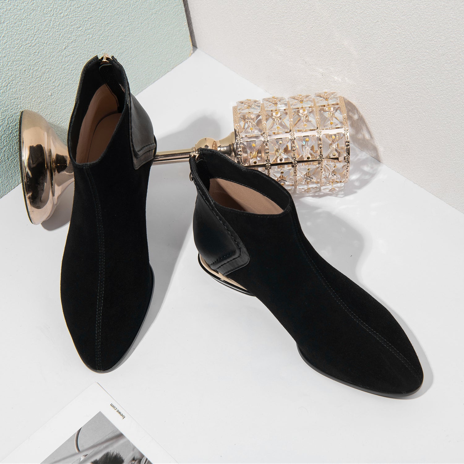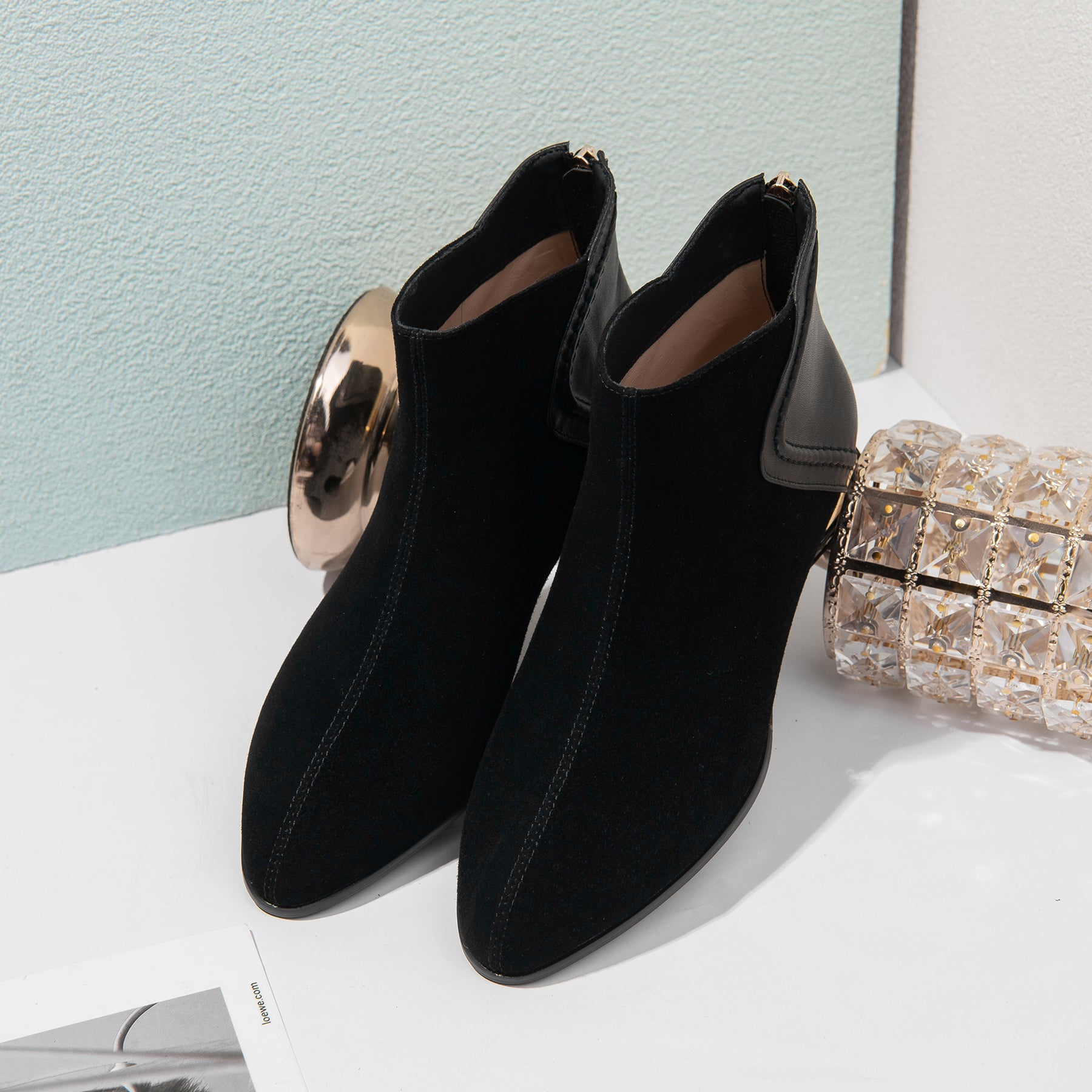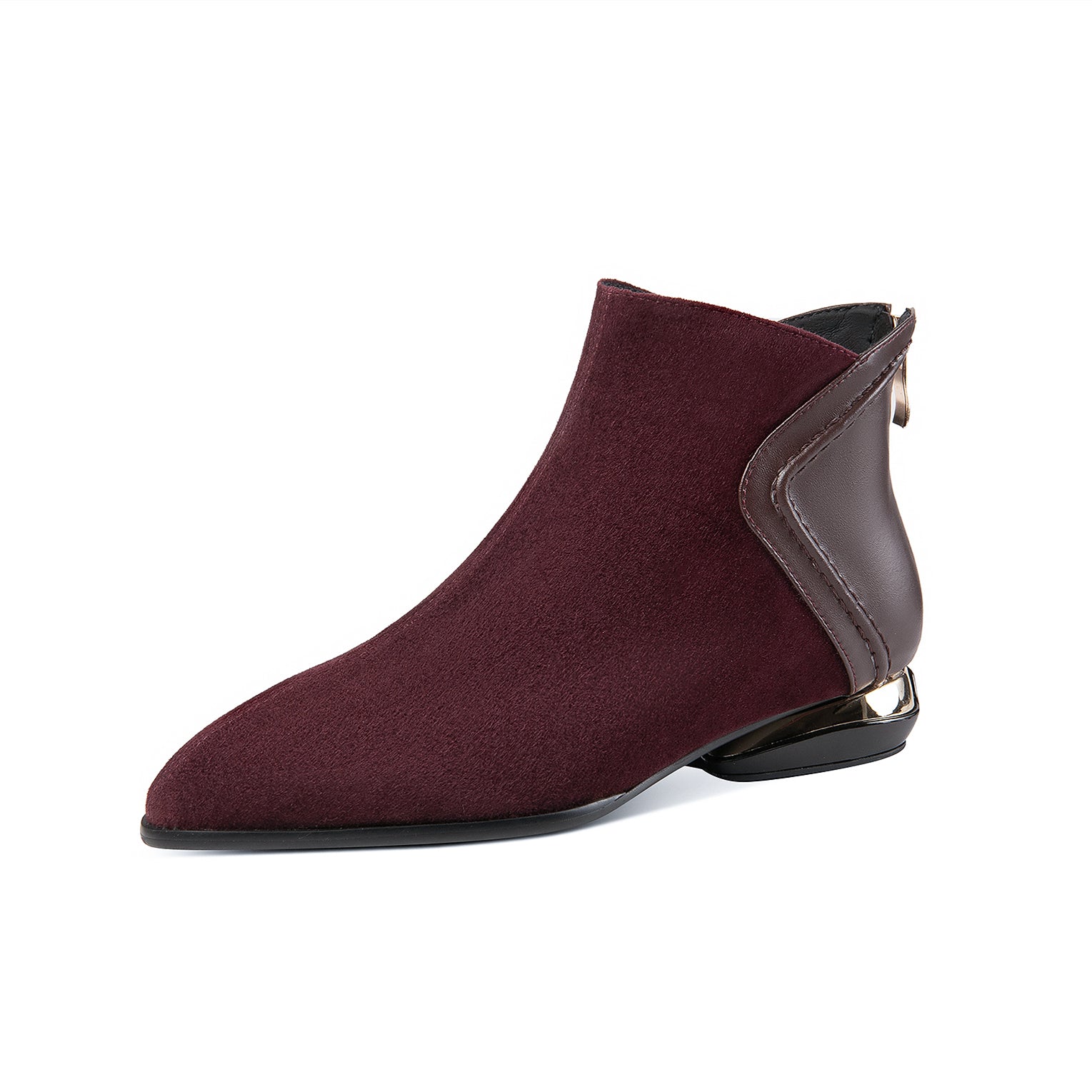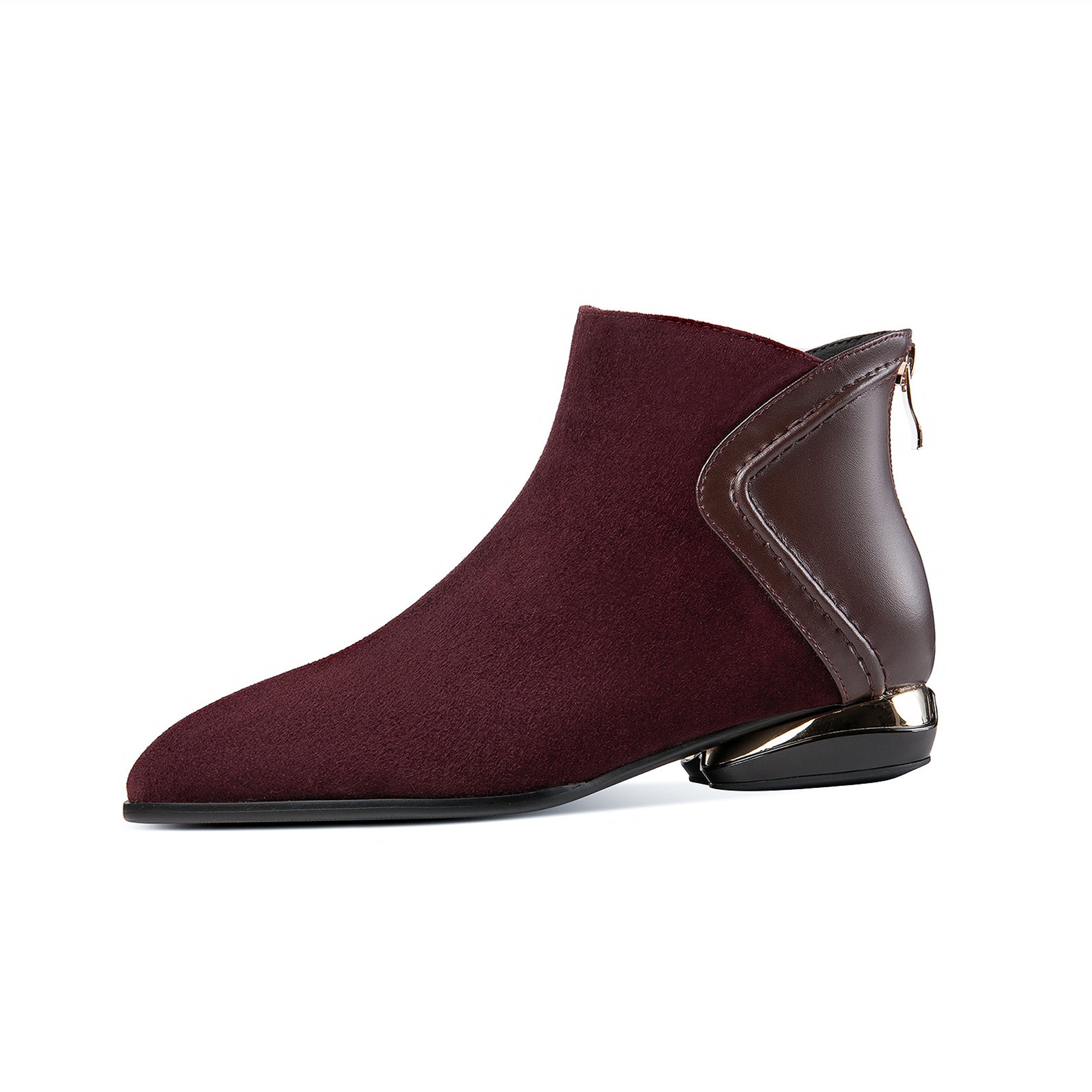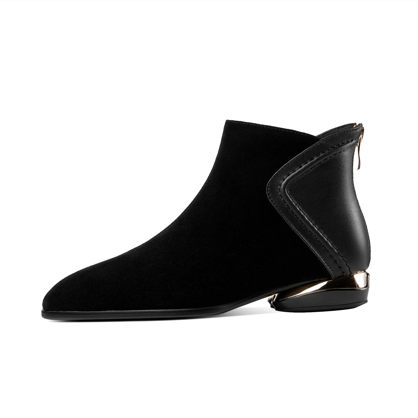 Ankle boots are designed with leather, pointed toe and zip up to keep up with fashion trend.