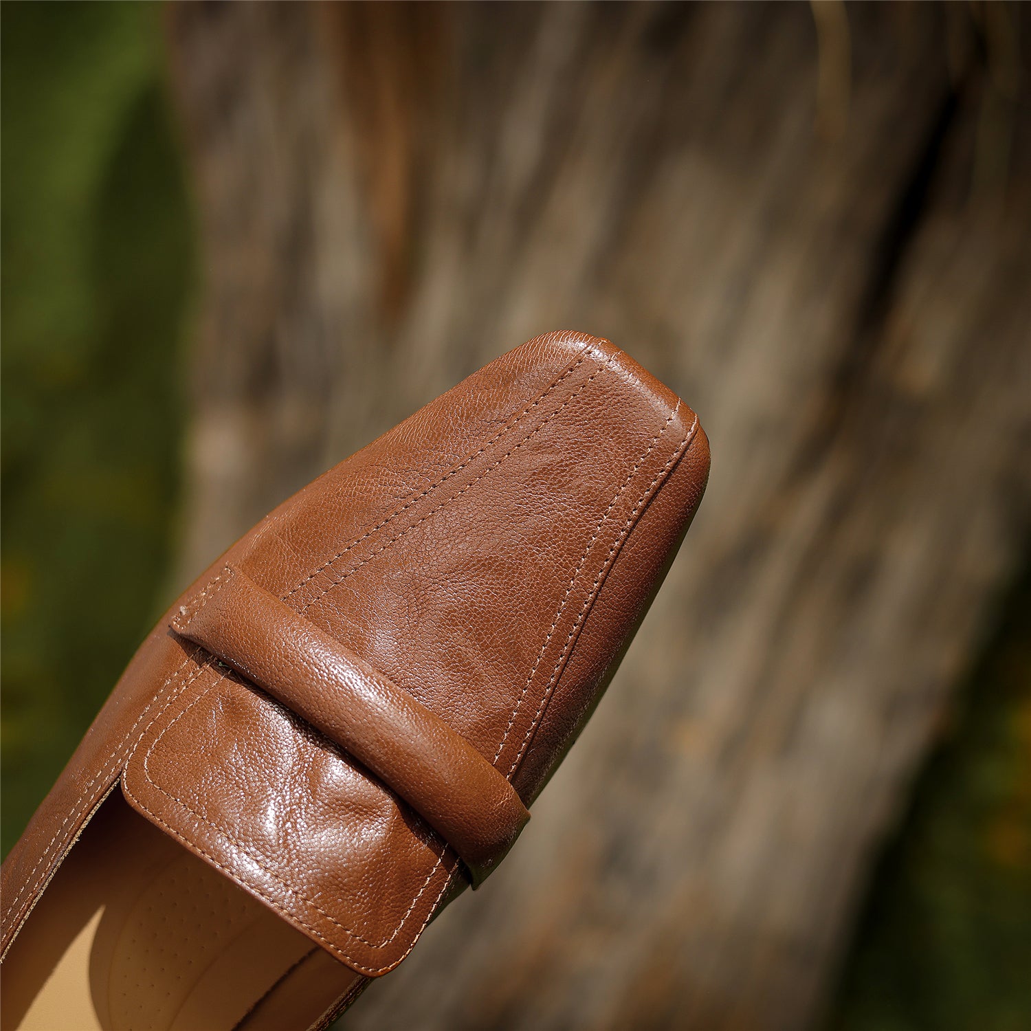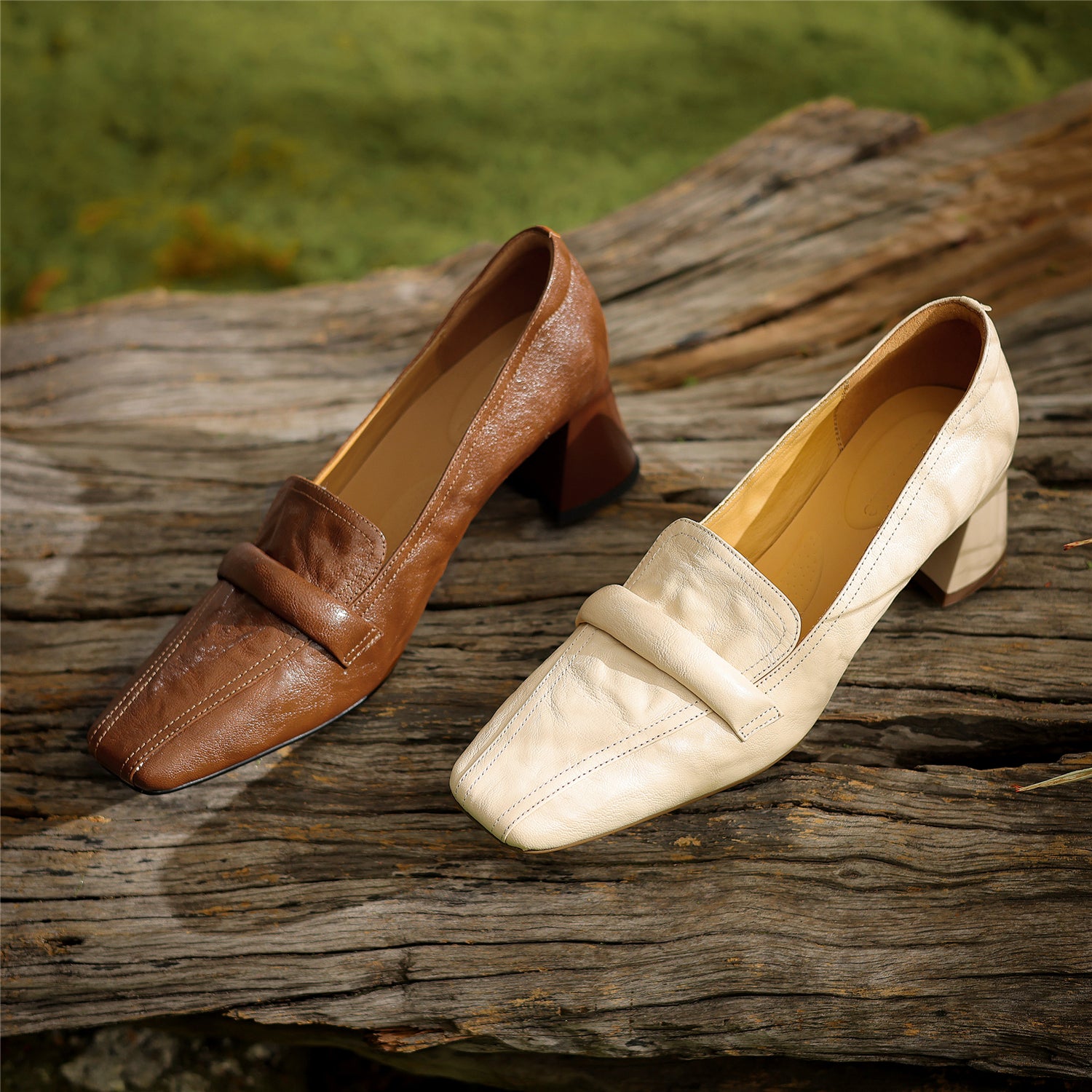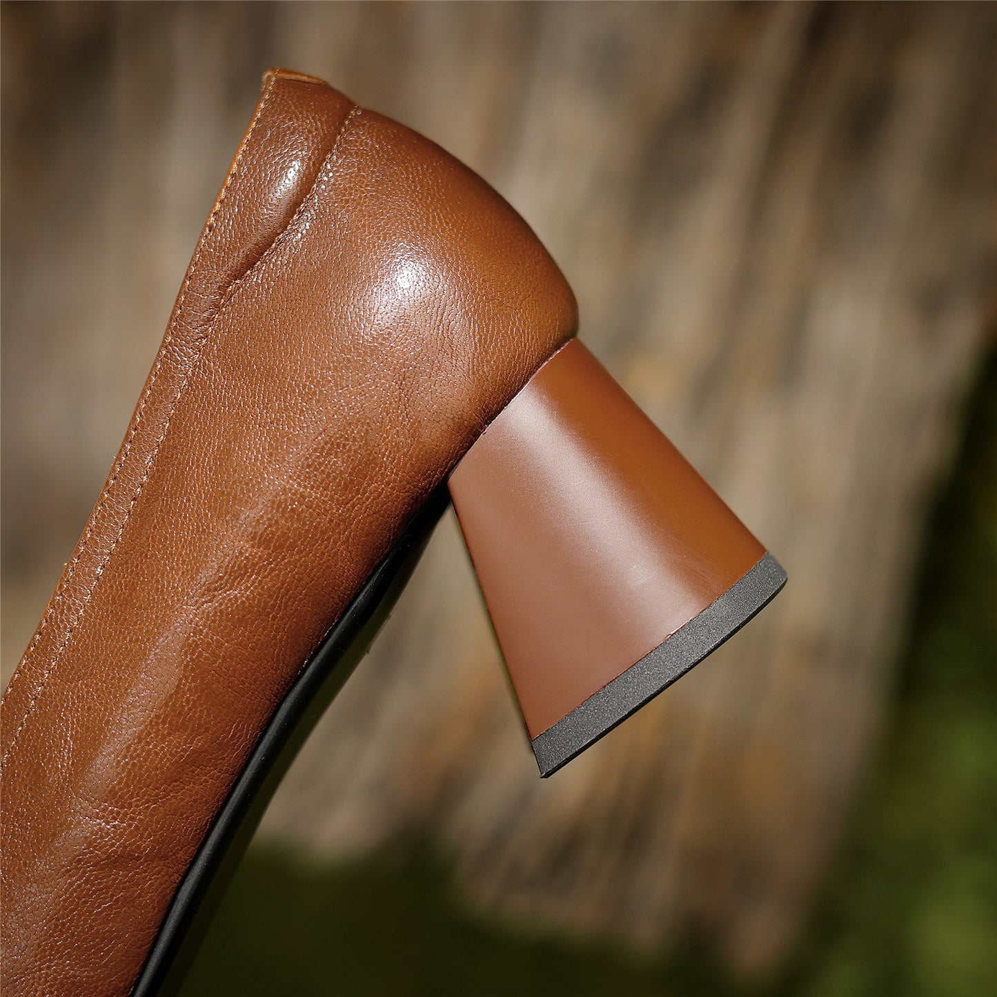 TinaCus Women's Handmade Genuine Leather Chunky Heel Slip On Pumps