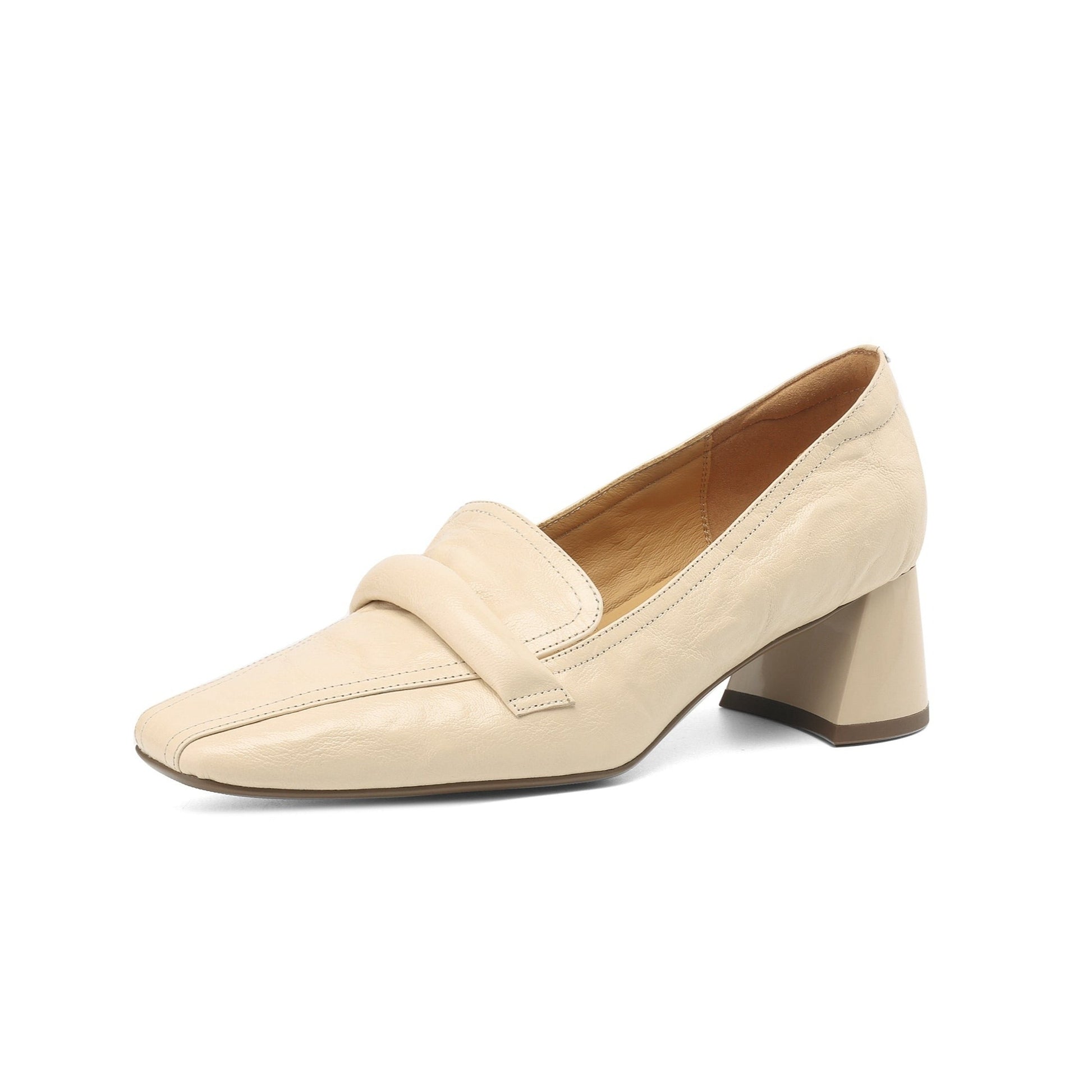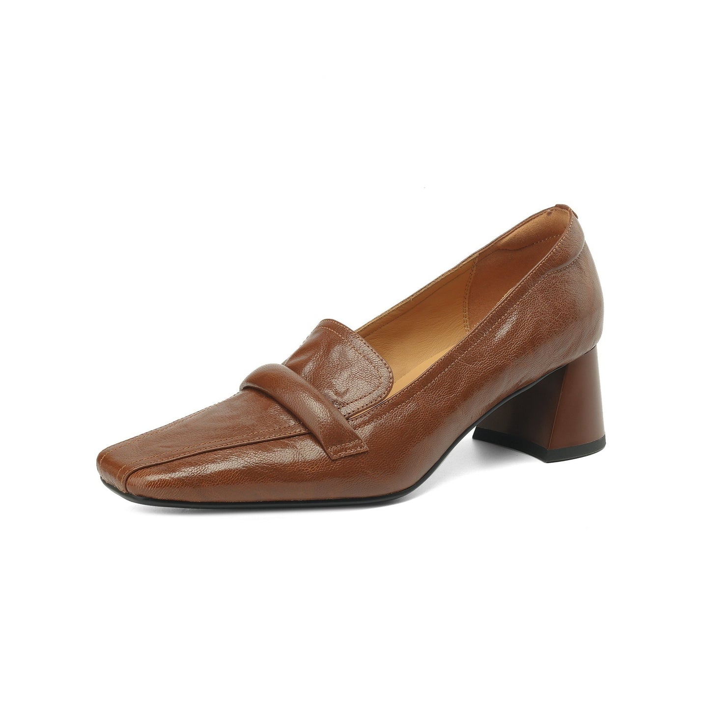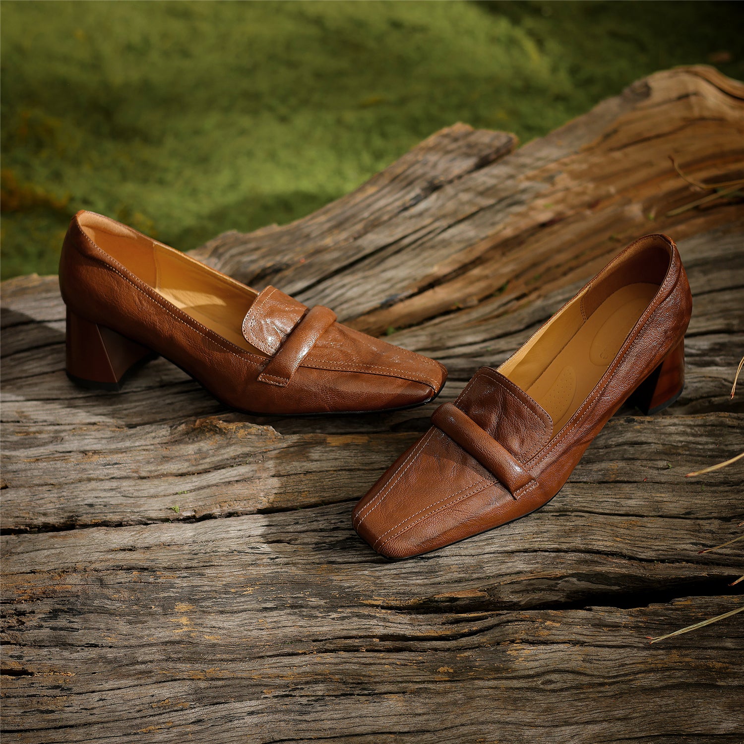 TinaCus Women's Handmade Genuine Leather Chunky Heel Slip On Pumps