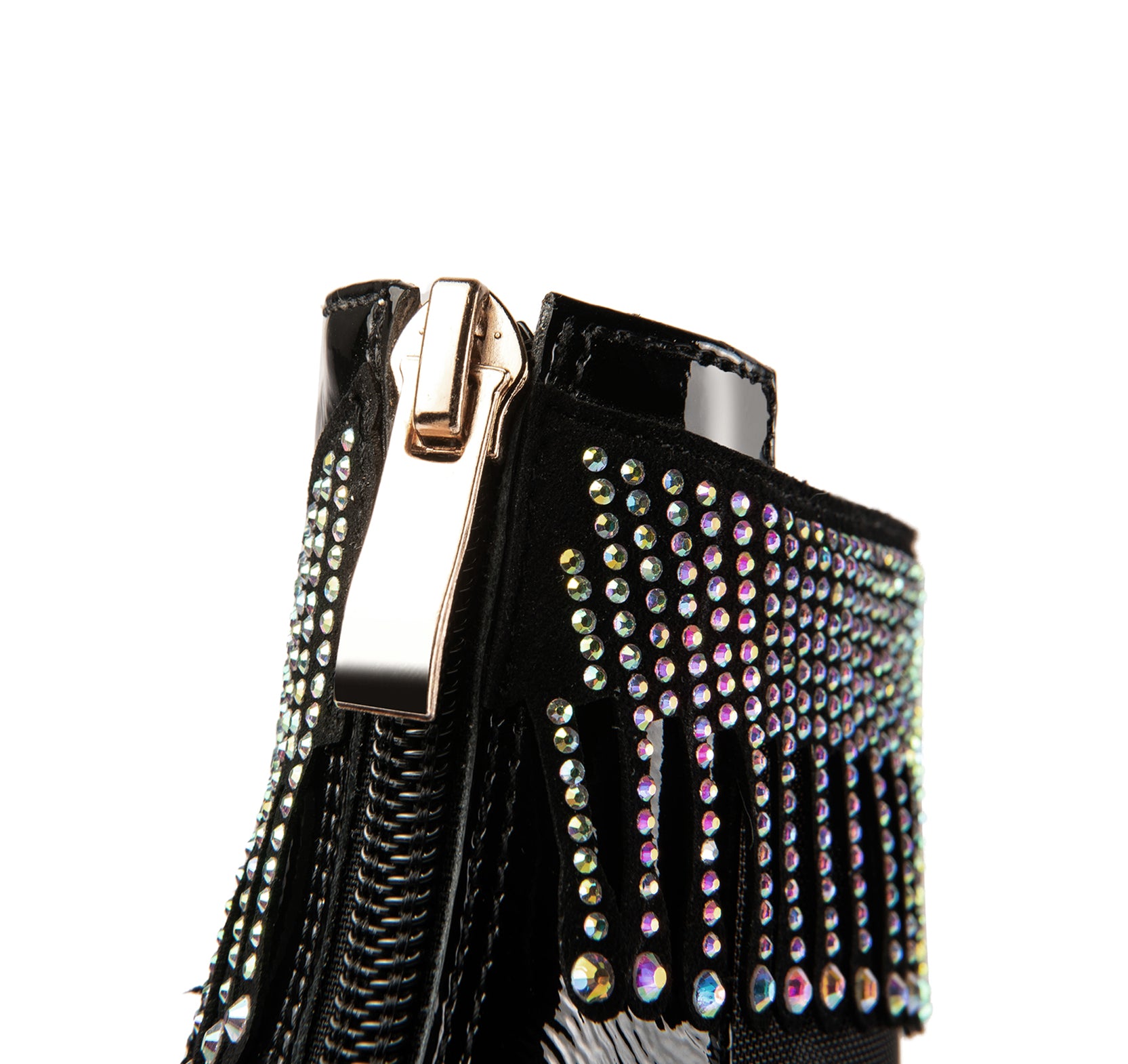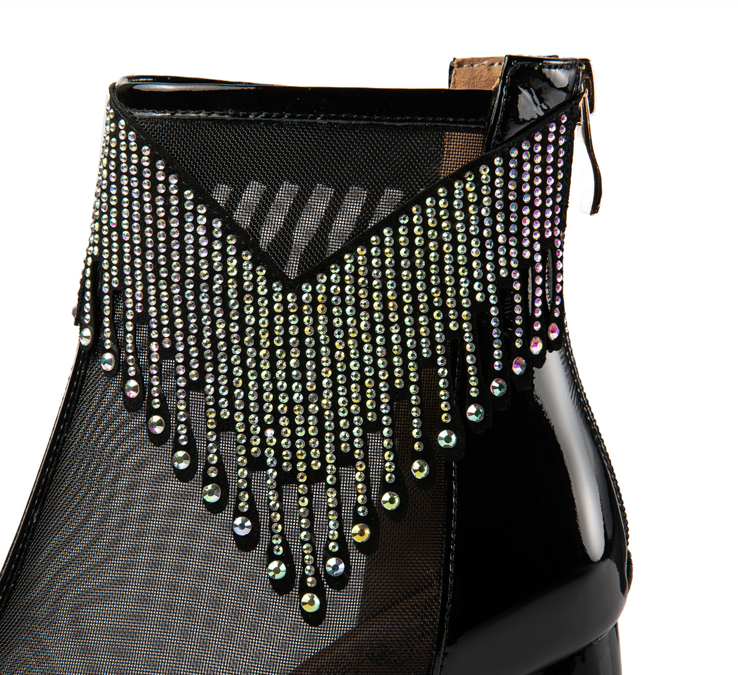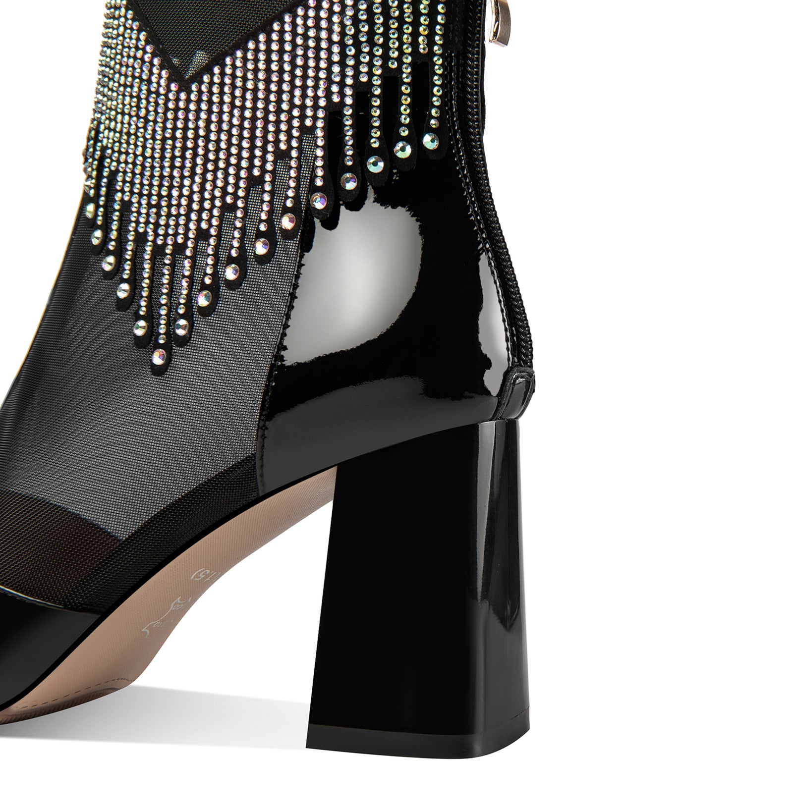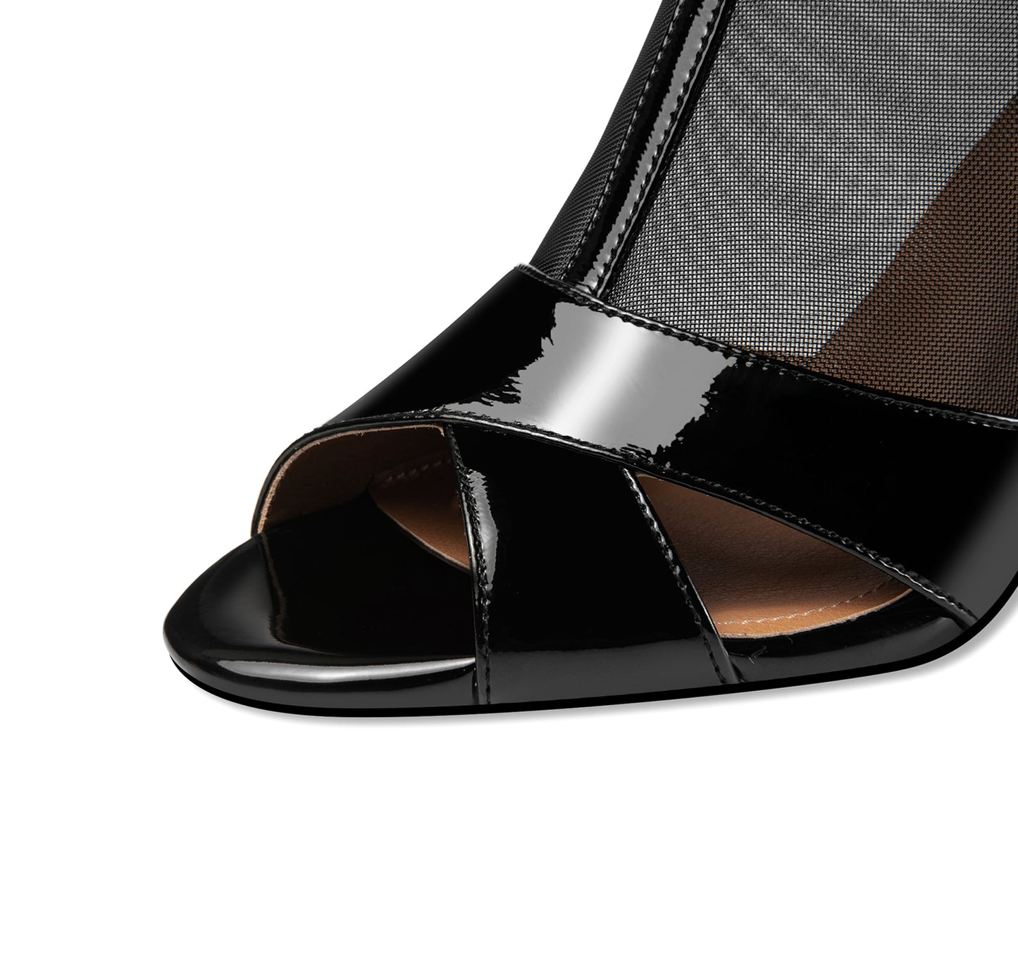 TinaCus Women's Handmade Patent Leather Mesh Glitter Rhinestone Chunky Heel Back Zip Up Sandals Summer Ankle Boots