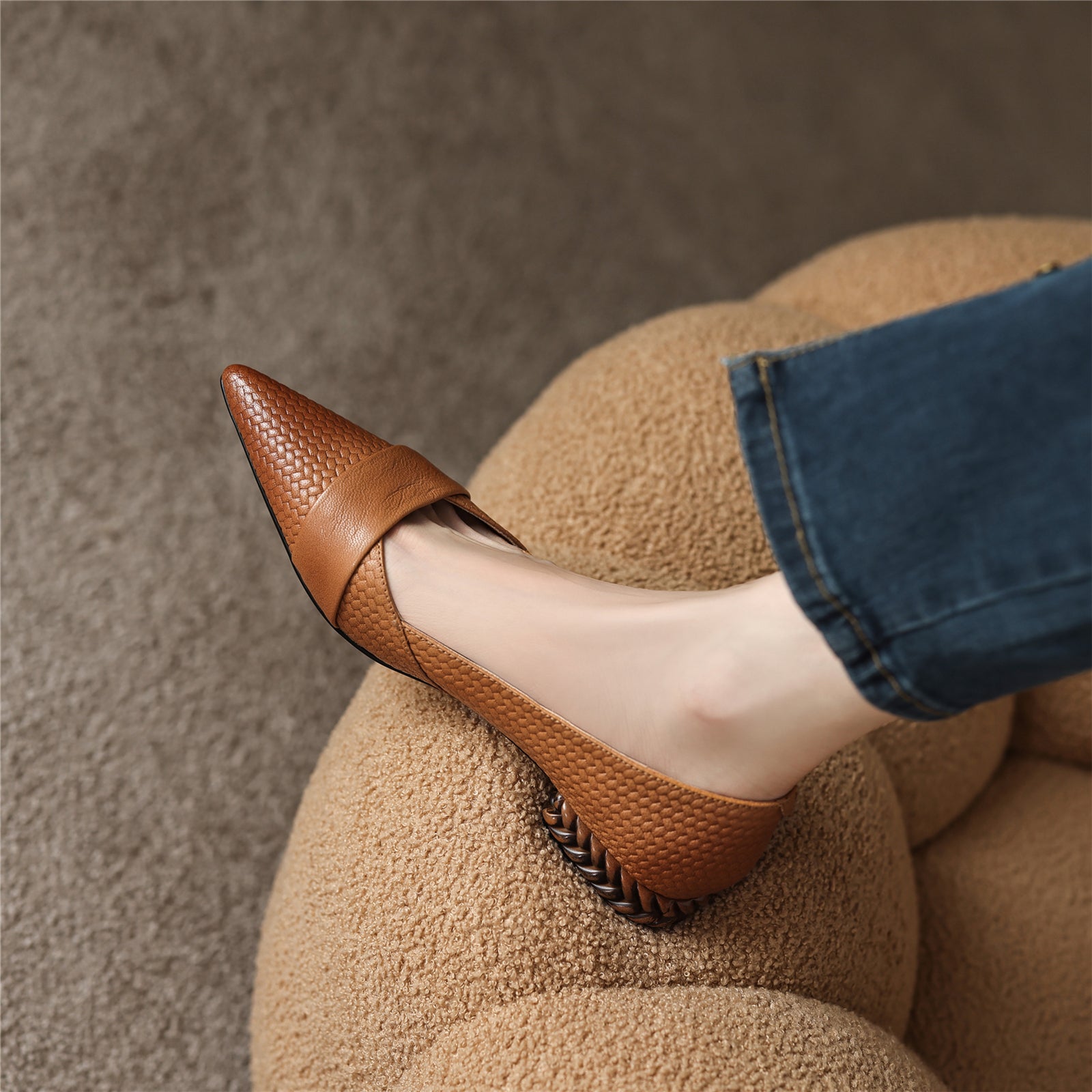 Comfortable shoes with genuine leather, pointed toe and slip on closure can go with your dress, jeans and pants.