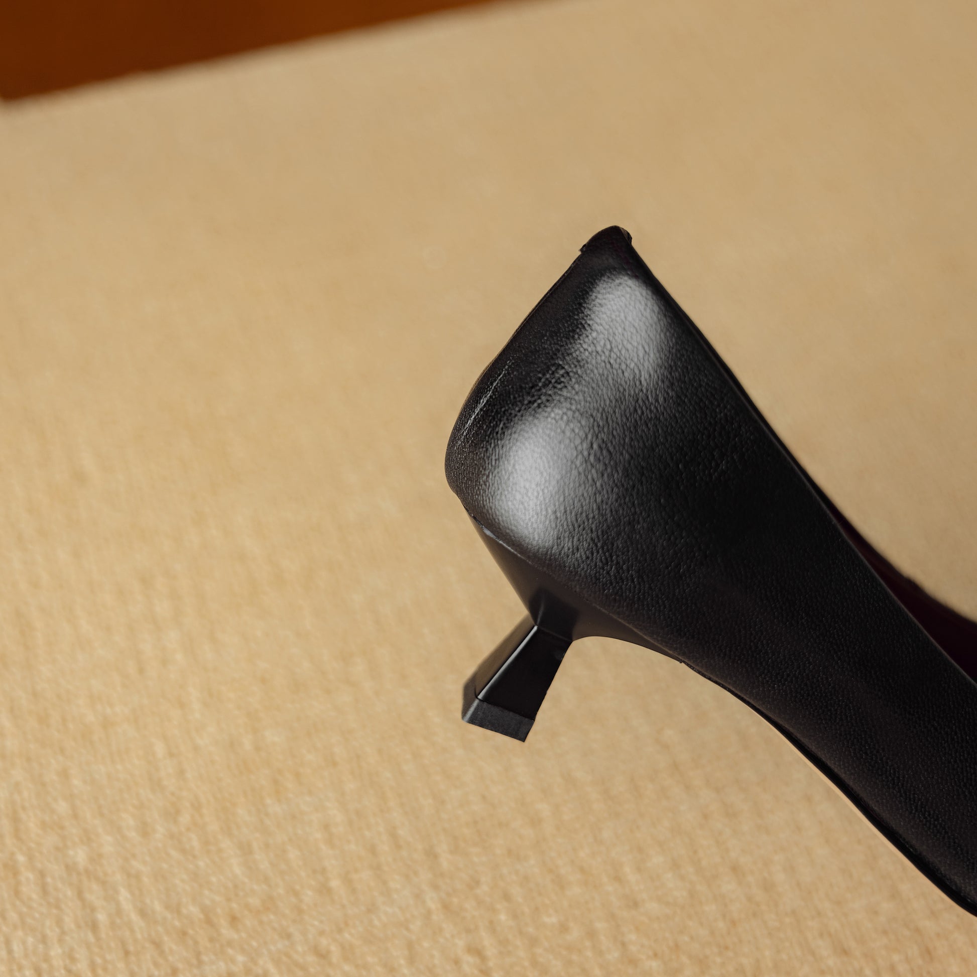 Chic pumps shoes designed with genuine leather, pointed toe and low heels to keep up with fashion trend