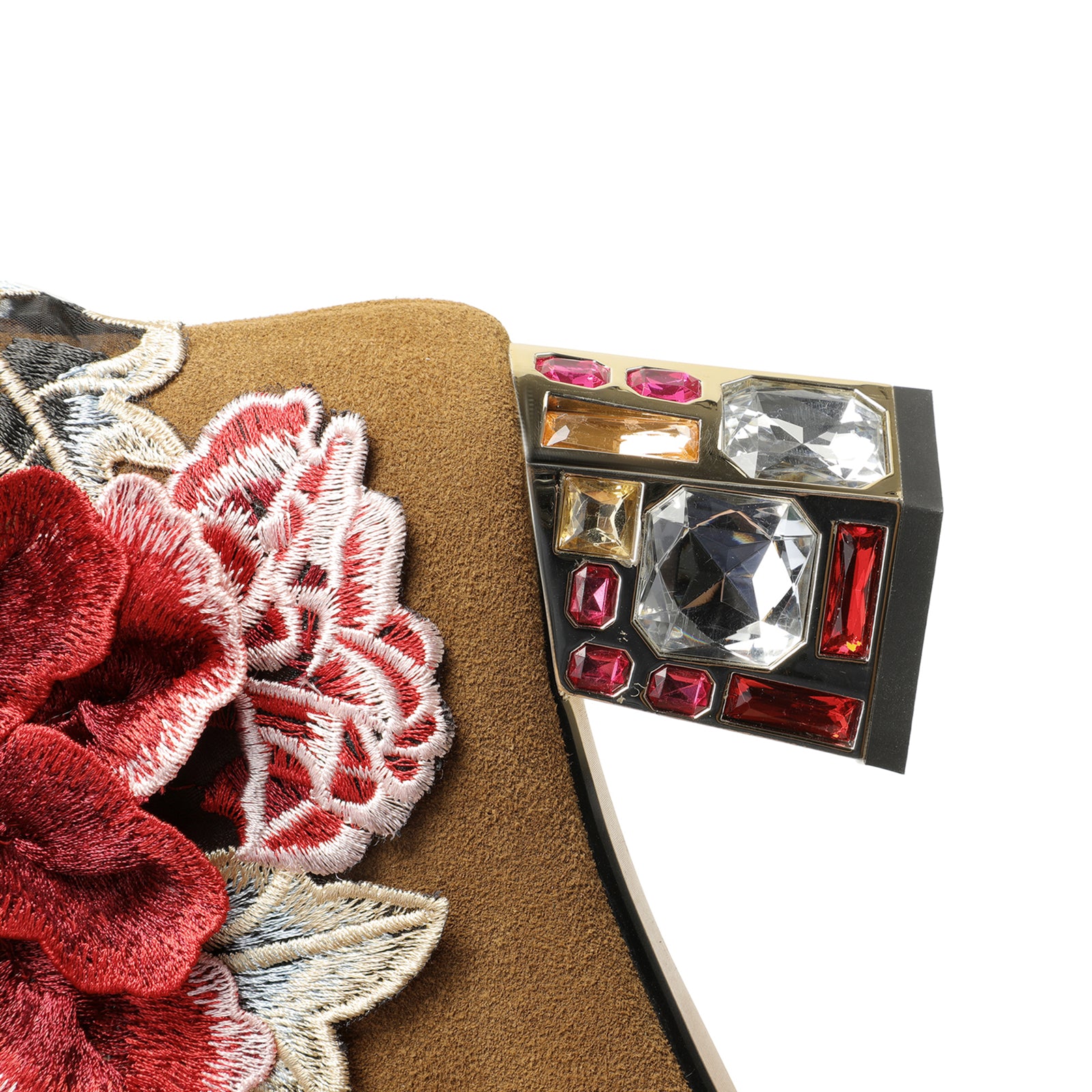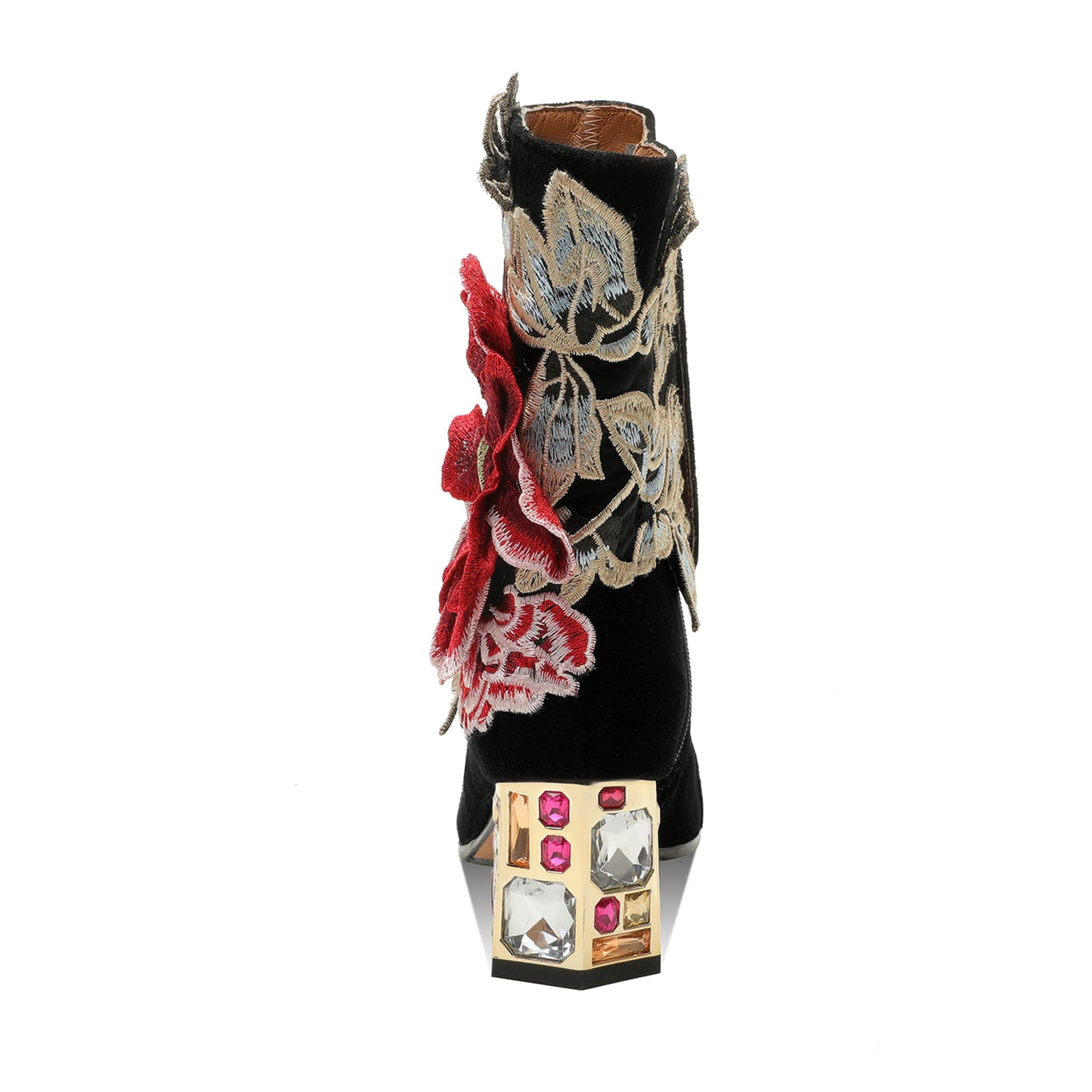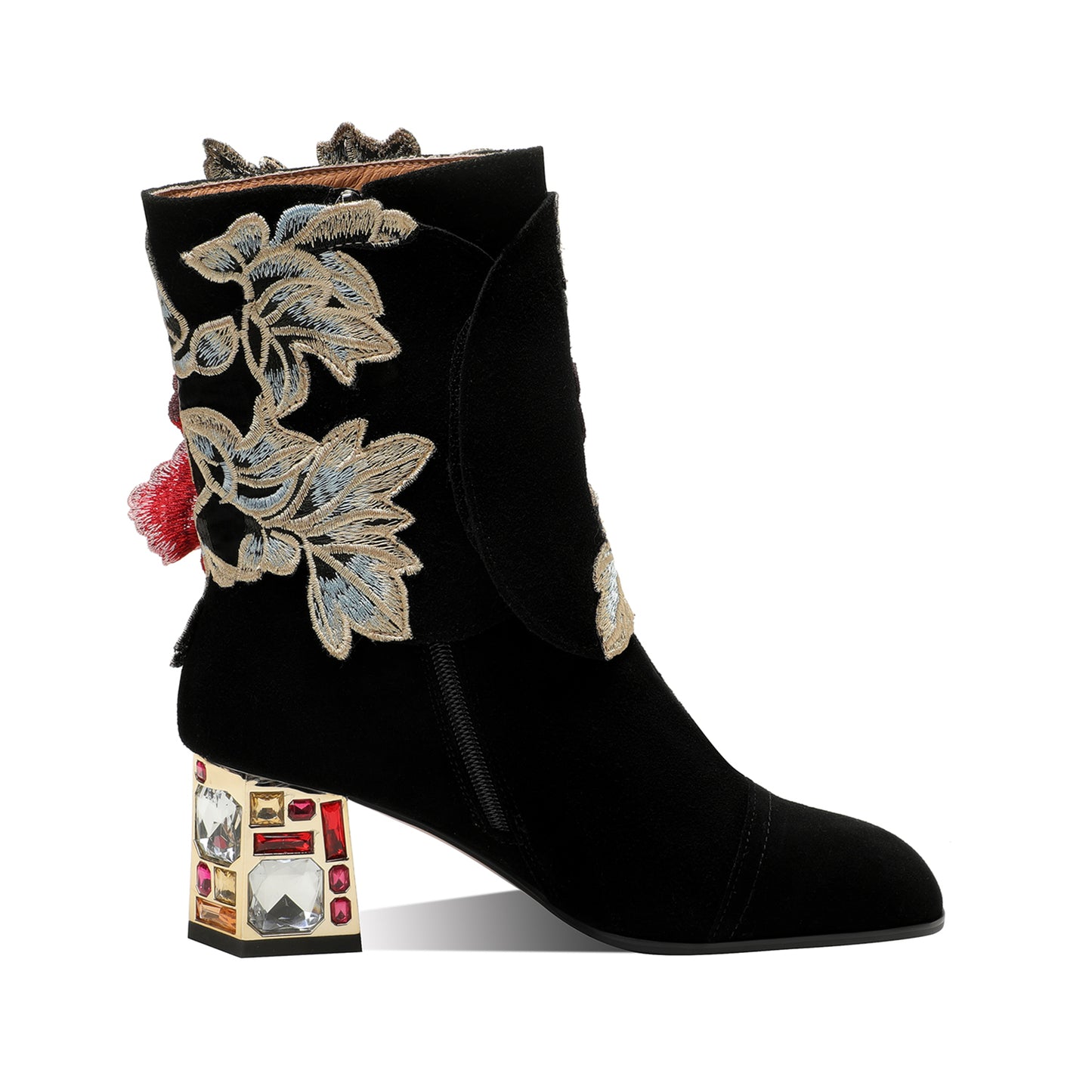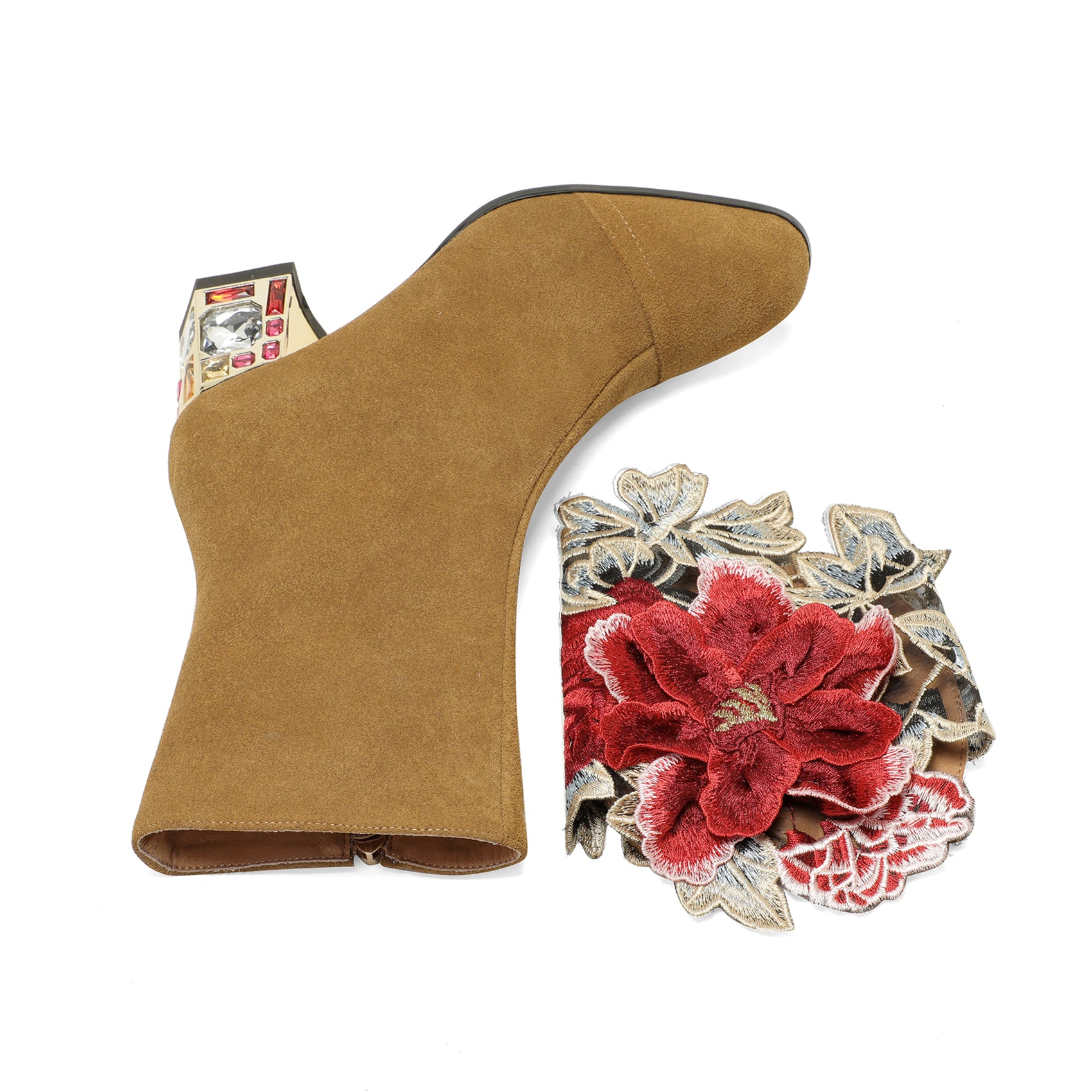 TinaCus Women's Suede Leather Detachable Flower Handmade Crystal Chunky Heel Zip Up Boots