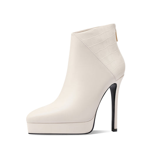 TinaCus Women's Genuine Leather Platform Stiletto Heel Handmade Back Zip Up Ankle Boots