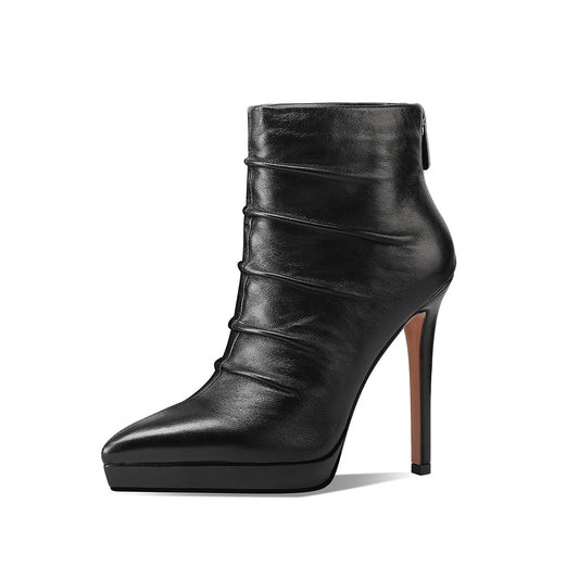 TinaCus Women's Genuine Leather Pointed Toe Platform Stiletto Heel Handmade Side Zip Ankle Boots