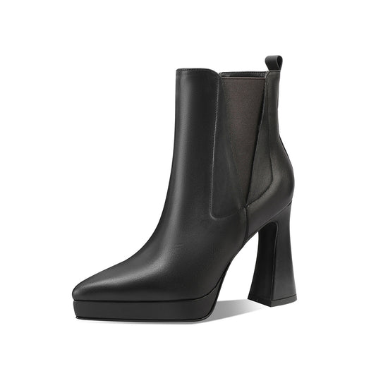 TinaCus Women's Genuine Leather High Heel Platform Handmade Side Zip Pointy Toe Ankle Boots
