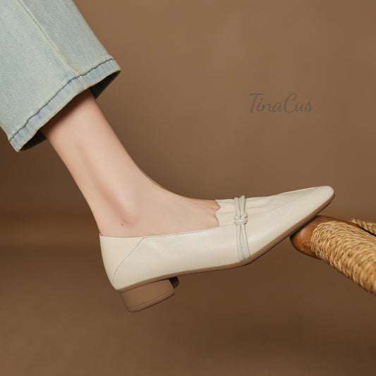 TinaCus Women's Pointed Toe Soft Genuine Leather Low Chunky Heels Handmade Pumps Shoes
