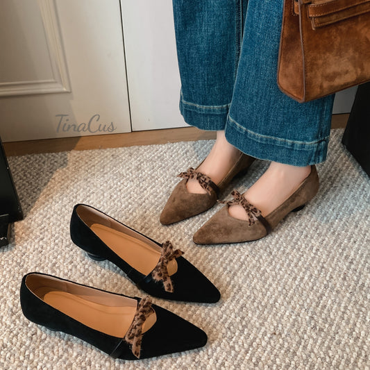 TinaCus Women's Pointed Toe Suede Leather Handmade Bowknot Low Heels Cute Loafers Shoes