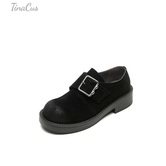 TinaCus Handmade Women's Suede Leather Monk Buckle Round Toe Loafer Shoes