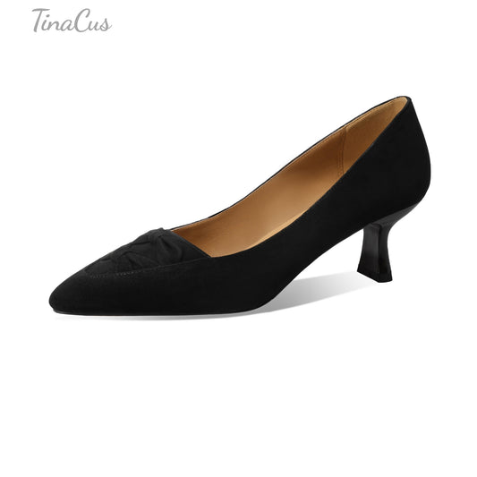 TinaCus Handmade Women's Suede Leather Pointed Toe Dressy Office Pumps Shoes with Bowknot