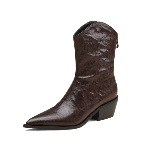 TinaCus Women's Pointed Toe Genuine Leather Handmade Zipper Chunky Heel Classic Mid-Calf Boots