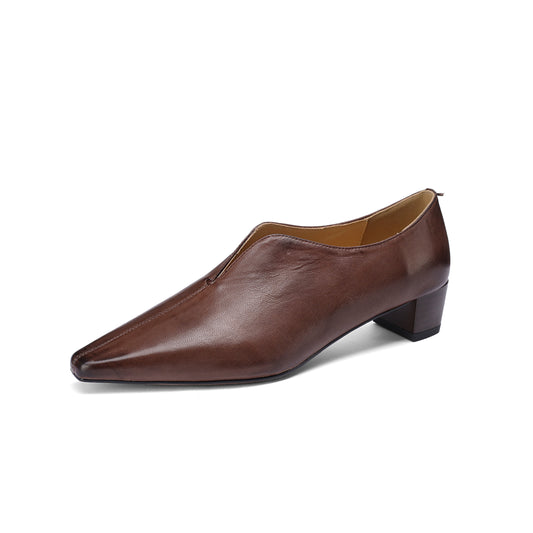 TinaCus Women's Handmade Genuine Leather V-Shape Slip On Block Heel Pumps Shoes