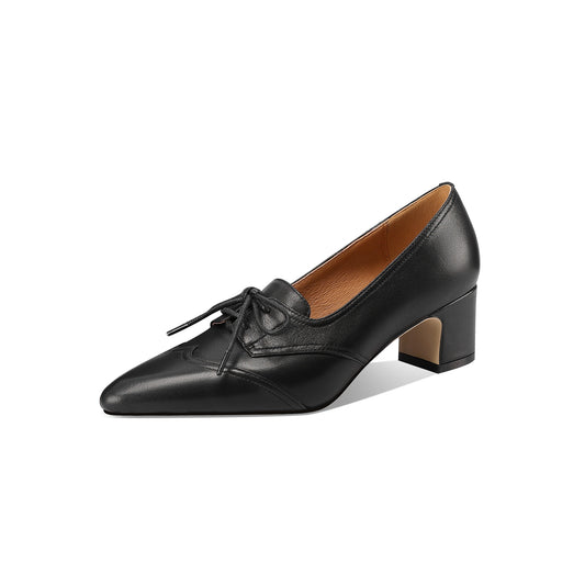 TinaCus Women's Pointed Toe Genuine Leather Handmade Chunky Heels Lace up Oxford Shoes