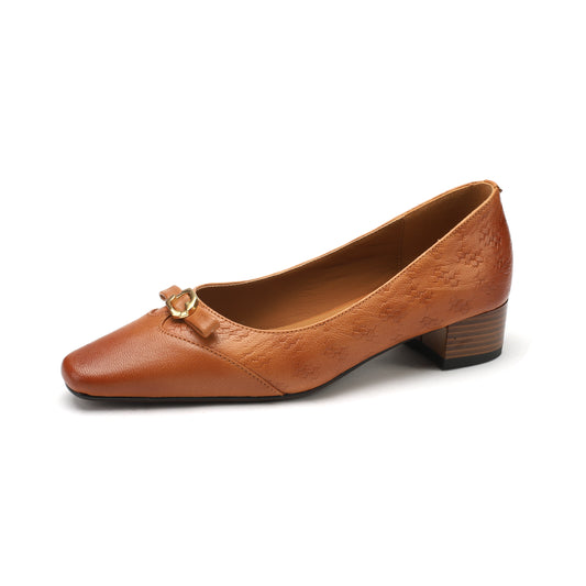TinaCus Women's Pointed Toe Genuine Leather Handmade Mid Chunky Heels Graceful Pumps Shoes