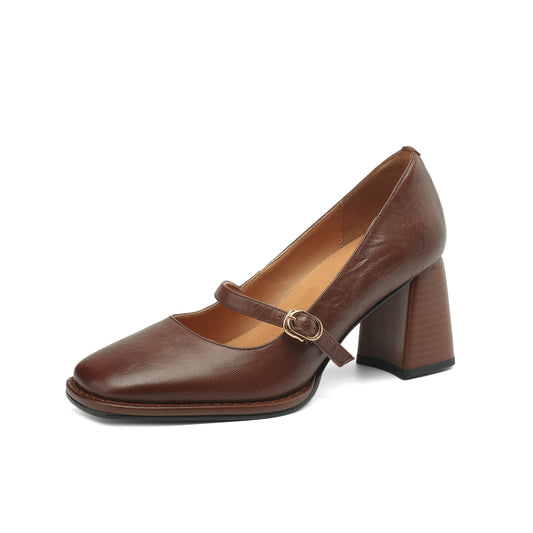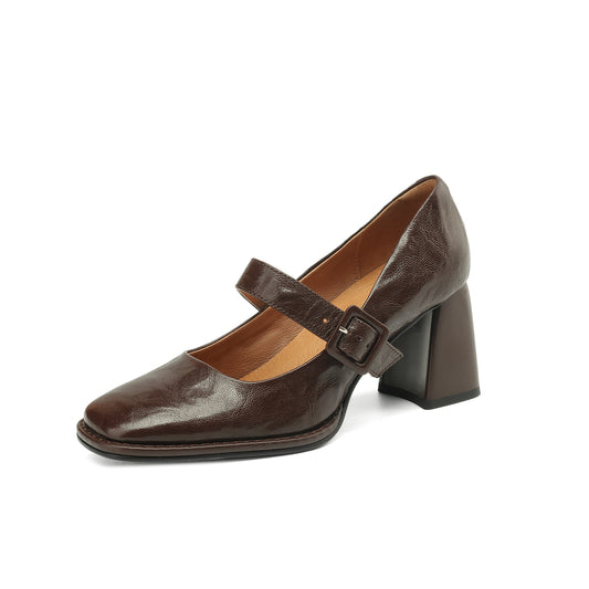 TinaCus Handmade Genuine Leather Women's Square Toe Modern Buckle Mary Jane Pumps