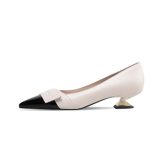 TinaCus Women's Handmade Genuine Leather Bowtie Square Toe Kitten Heel Pumps Shoes